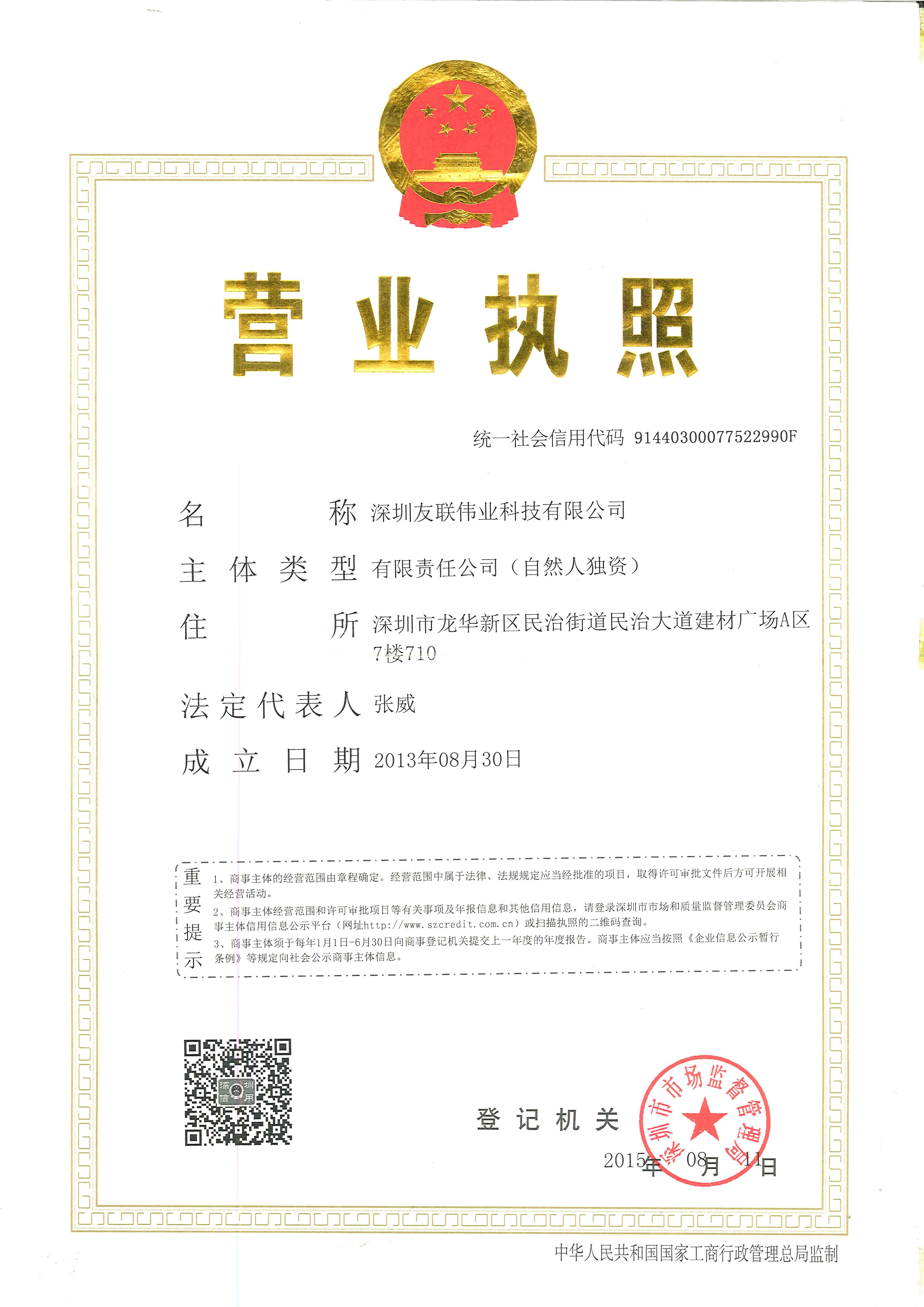 记得,2013年8月成立了深圳友联伟业科技有限公司,申请了一般纳税人,算是正式踏上了创业的长征,起点很低,因为资金是靠自己的原始积累,创业前期都是身兼多职,一人当成多人用,恨不得多几双手脚,多几个脑袋,财务、营销、仓管、采购、文员都是自己一个人。现今公司经过三年多的发展,已聘请专门财务人员、销售人员,今年销售额有望突破500万元。