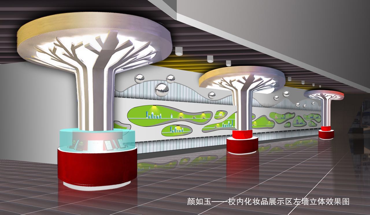 4.化妆品展示厅设立于图书馆一楼校史馆旁,总计45平方,计划于12月装修落成;