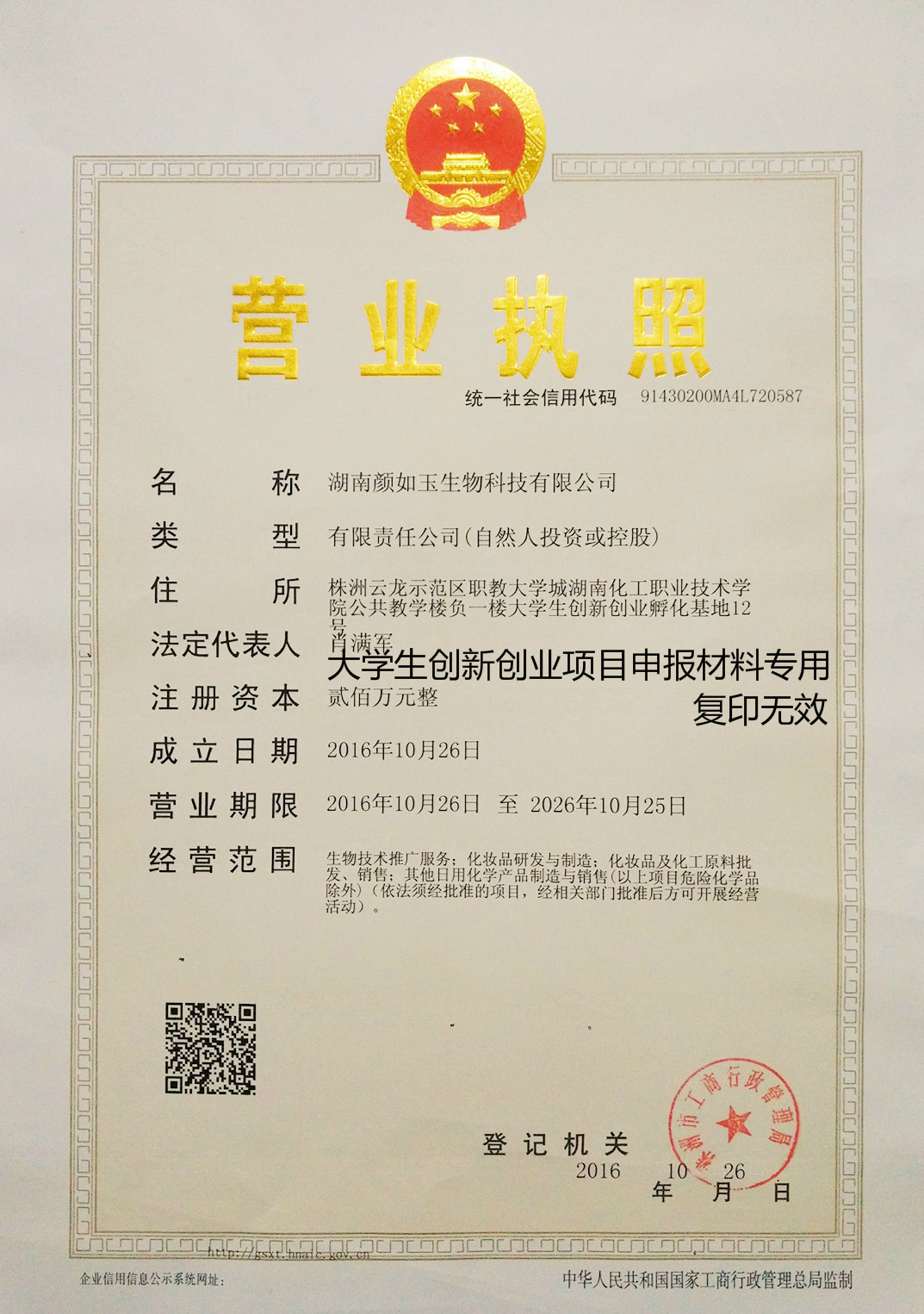 1.工商注册工作已于10月26日完成,并获得株洲市工商局颁布的《营业执照》;