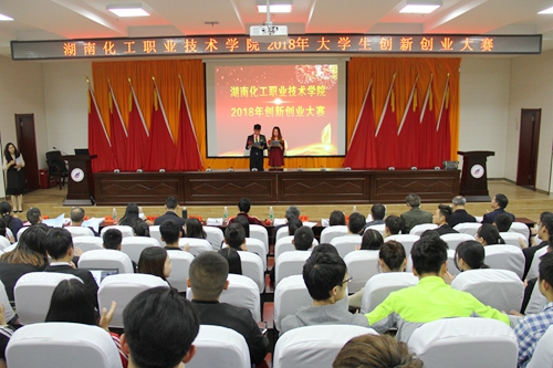4月8日晚,湖南化工职业技术学院2018年大学生创新创业大赛决赛在图书馆二楼报告厅隆重举行。学校副校长隆平教授为大赛致辞,特邀湖南省就业指导中心夏学军副主任、中华职教社周勇秘书长、全国“互联网+”大学生创新创业大赛评委熊苹教授、株洲市教育局就业创业指导中心周玲主任、铁道职院创新创业学院周赣院长、铁路科技职院创新创业学院李平院长、我校各二级学院院长等领导及嘉宾出席本次大赛并担任评委。