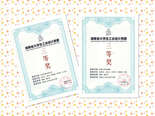 此次湖南省大学生工业设计大赛,选手多,级别高,要求严,还要寄送实物模型。我校工业设计专业只有三年多办学历史,如此年轻的专业,能在全省高手如云、竞争激烈的设计大赛中取得如此成绩实属不易。