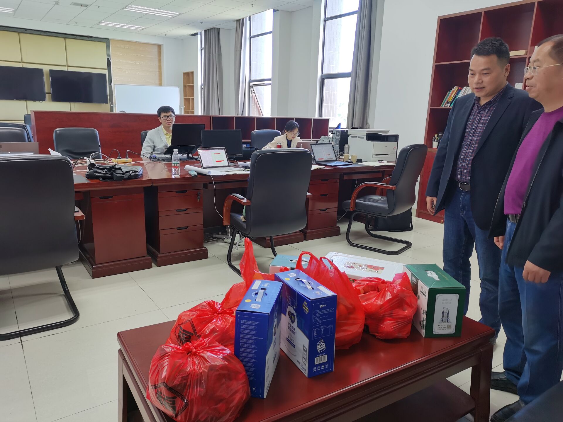 5月3日上午,校工会副主席唐轮章带领工会办公室人员到学校图书馆看望学校申报省高水平高职学校和专业群建设计划项目材料撰写组成员,并送上牛奶,水果等慰问品。