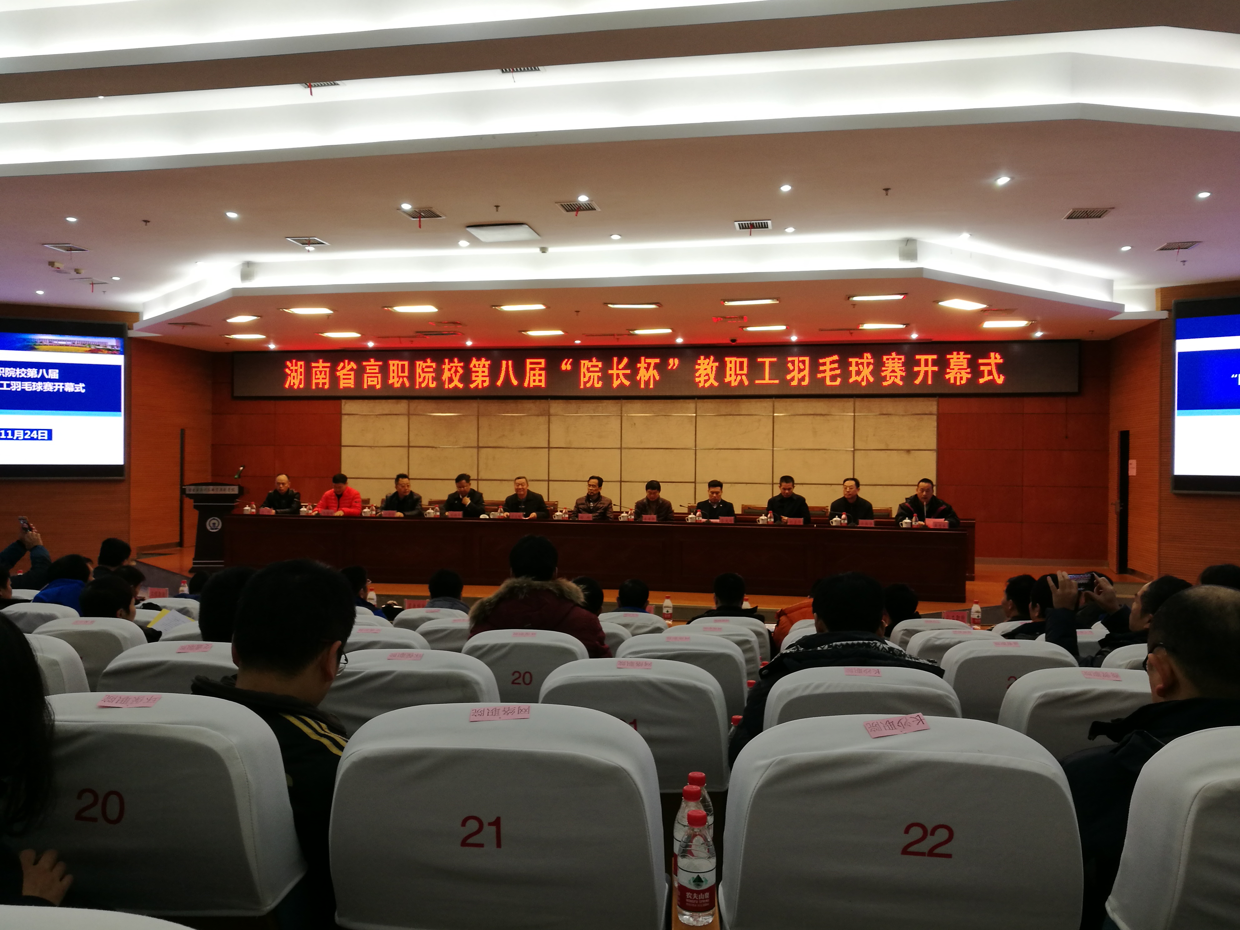 11月24日,由湖南省教育厅组织的省高职院校第八届“院长杯”教职工羽毛球赛在湖南铁路科技职业技术学院拉开帷幕。来自湖南省高职院校的十七个教职工代表队参加了比赛。比赛分单项及团体比赛。此次比赛我院参加了个人单项及团体比赛,经过为期半个月的辛苦集训,我院队员们秉承“团结、友爱、互学、互敬”的原则,充分发挥团队合作精神,队员们赛前刻苦训练,认真打好每场比赛。经过4天的激烈比赛,获得男子单打第6名、第8名和女子双打第6名的好成绩,团体比赛的成绩也比往届有较大的进步,通过比赛,既加强了各兄弟院校的交流,也充分展现了我院教职工良好的精神风貌。