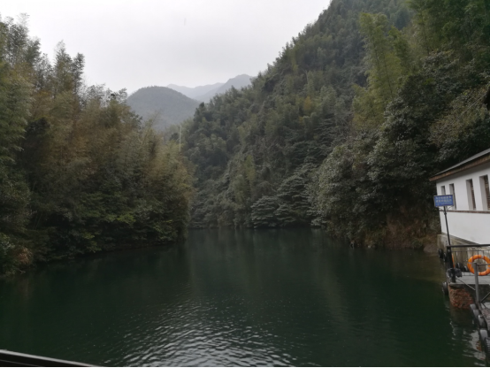 下了船,沿着石阶前行。放眼望去,群山无限,满眼青翠,有种“深山不见人”之感。而一路相伴相随的淙淙的溪流声使得这林逾静、山更幽,让人心旷神怡。沿着溪流而行,峡谷的瀑布或潭就一个接一个地以不同气质出现在我们眼前。有着层层递进、总落差达48米的三级天线瀑布,有着瀑布跌水好似鸳鸯嬉水、缠绵悱恻又不失气势磅礴的鸳鸯瀑布,有着由斜形瀑布倾泻入潭、在潭内形成旋转状态的月亮潭,也有着潭似太极、波如佛光的太极佛光潭……