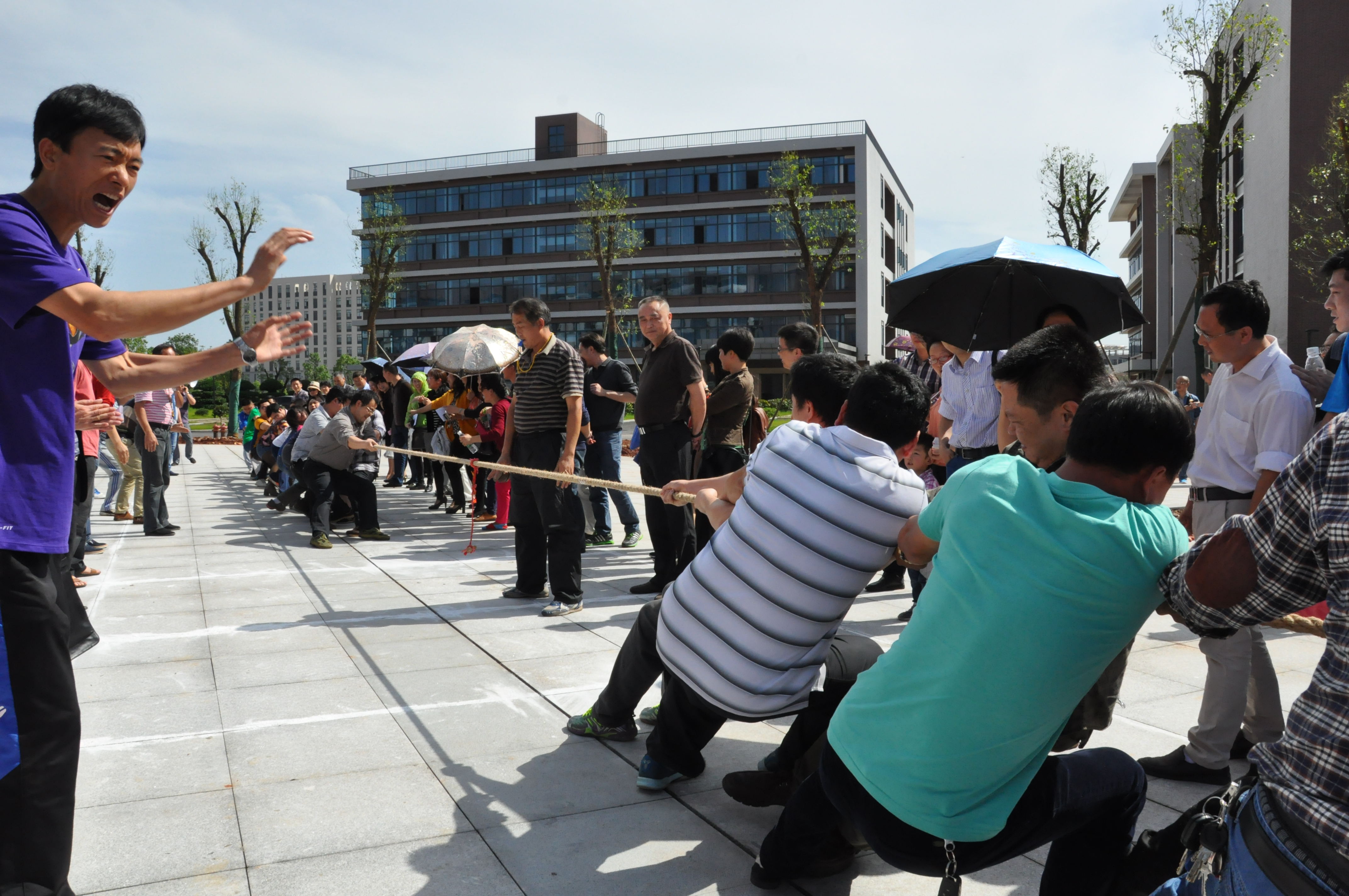 运动会首先进行了集体项目比赛——拔河。各分工会主席高度重视,亲自指挥。刘望院长等院领导也到现场观摩了比赛。在裁判的一声哨令下,各队之间展开激烈角逐。图书馆前呐喊声、加油声此起彼伏,热闹不已。经过三轮的淘汰赛,决出了前三名:基础课部分工会摘得桂冠,机关一分工会夺得第二,自动化与信息工程系分工会、机械工程系分工会并列第三。