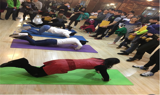 活动总共分为三个环节:勇往直前,平板支撑,1分钟俯卧撑。