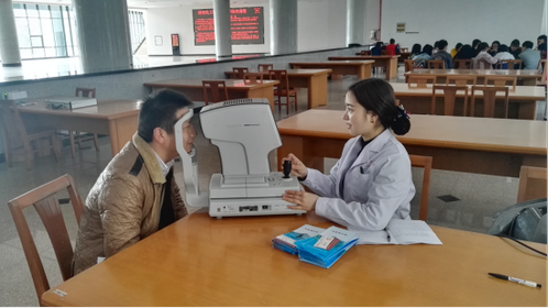 眼睛是每一个人心灵的窗户,随着现代生活节奏的加快,电脑和手机成了我们工作和生活中不可或缺的一部分,然而我们会常常忽略了眼睛的?;?,至此越来越多的人带上了眼镜,模糊不清的世界引发了不少尴尬和烦恼。鉴于此,2月28日下午,湖南化工职业技术学院工会及卫生所携手省直中医院验光配镜科走进了校园,为广大教职工送来护眼福利。活动中,省直中医院的眼科医生们为教职工测量视力,解答用眼问题,并免费测光,清洗眼镜。同时,现场参与活动的教师们纷纷表示,通过与专业人员的深入交谈,他们了解到一些日常爱眼护眼的方法以及配镜应该注意的事项,体会到爱眼护眼的重要性,在今后的工作和生活着,会多注意?;ぱ劬Γば牧橹?。