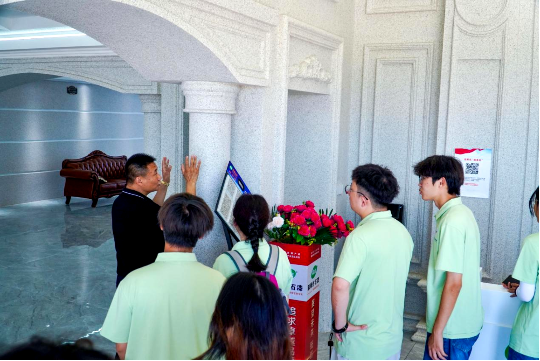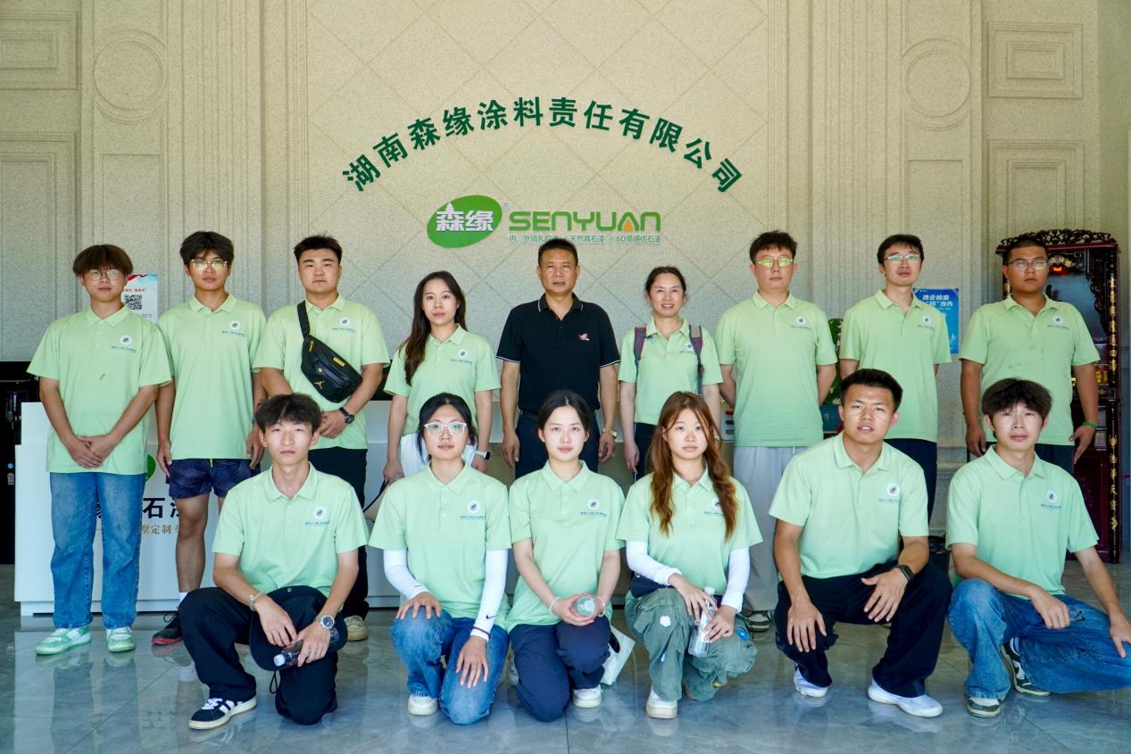 上午时分,我院志愿服务队顺利抵达湖南森缘涂料责任有限公司。公司董事长田小丰热情相迎,他满怀感慨地回顾了企业初创时的艰辛历程,从技术研发的重重困难,到市场拓展的四处碰壁,再到品牌建设的不懈探索,一一道来其中的挑战与辉煌成就。随后,田董事长带领大家参观生产区,细致讲解涂料生产的流程与工艺。接着走进涂料展厅,深入介绍企业文化、经营理念及资质荣誉等,同学们借此机会,实地直观感受各类质地、用途的涂料,收获颇丰。
