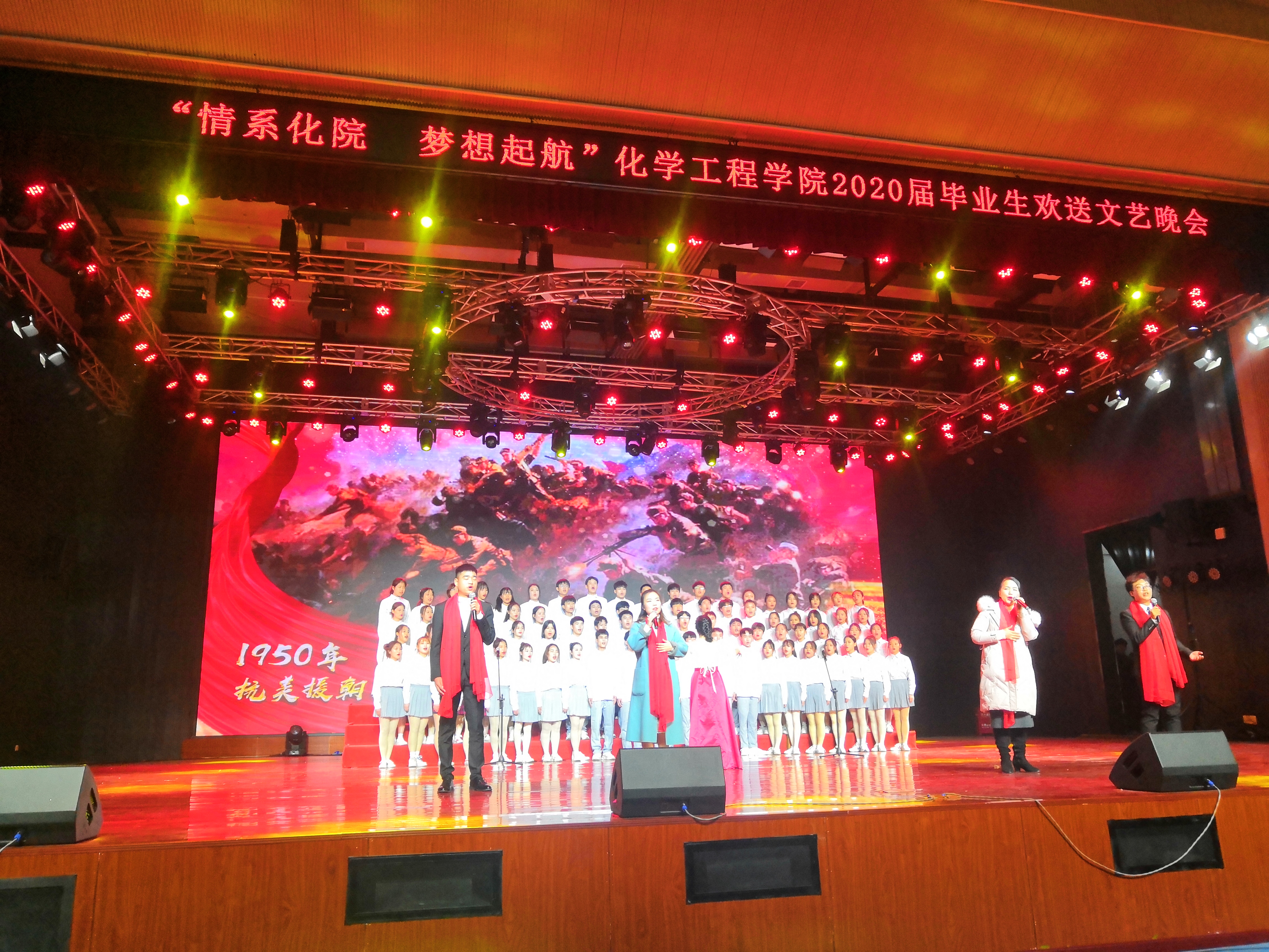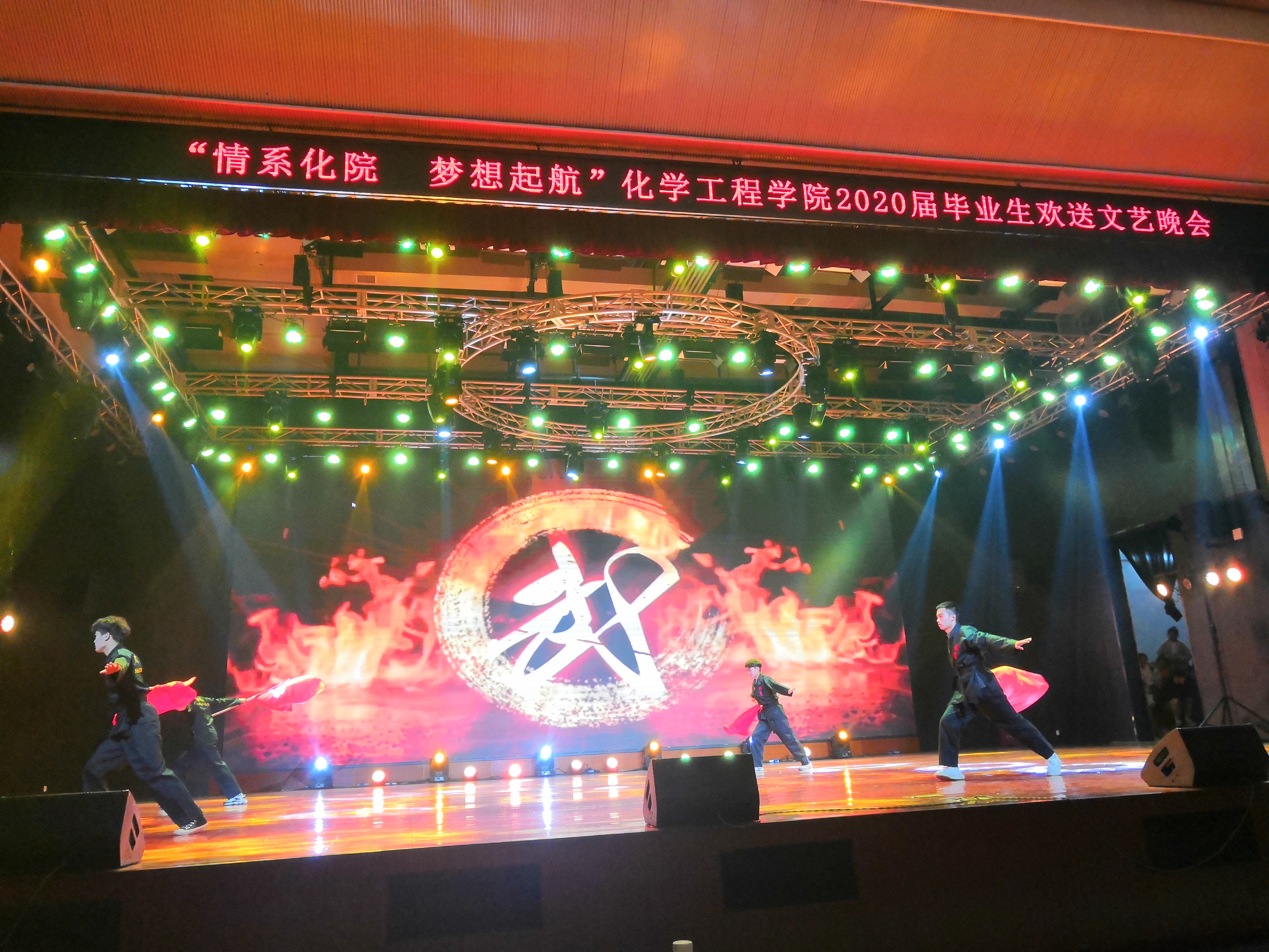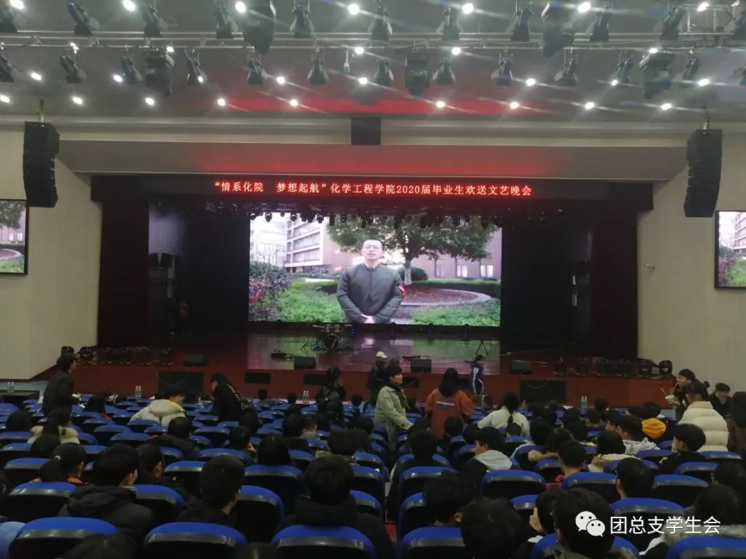 为丰富学生课余文化生活,欢送毕业生离校,12月18日晚上7点,化学工程学院在学校大礼堂举行“情系化院,梦想起航”2020届毕业生欢送文艺晚会。学校副校长胡颖蔓、学工处处长朱海军、团委书记鄢东、化学工程学院院长陈杰山、书记彭志宏、副书记温拥军,来校参加“交换生”培训的广州工程技术职业学院师生代表,以及学院师生1500余人一同观看了演出。
