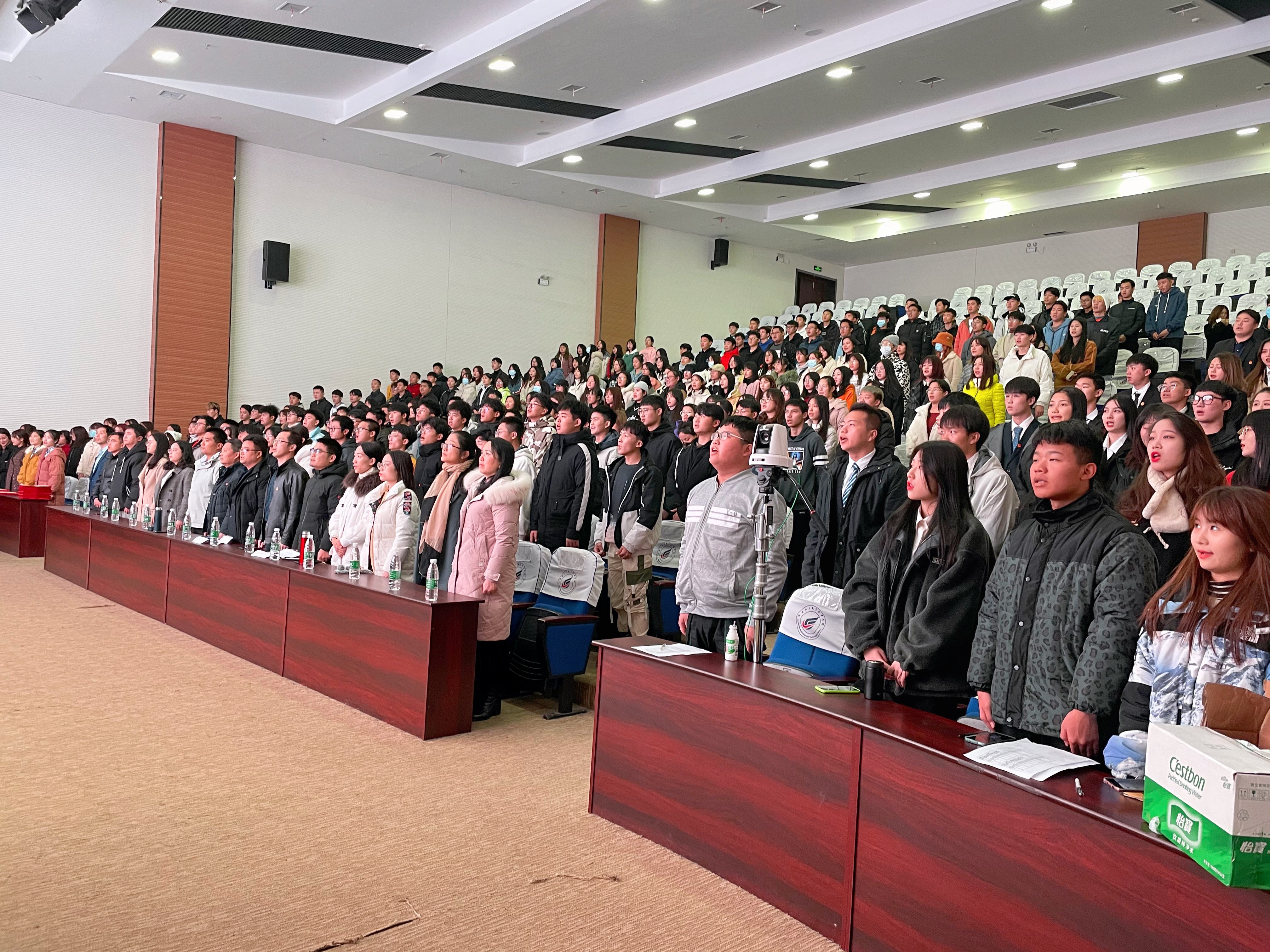 会议的最后一项议程,学院党总支副书记温拥军讲话,他对过去一年里学院的重点工作向在座的师生们进行了简要的介绍,对第十七届团学组织的工作成效进行了点评,肯定所取得成绩的同时,也指出了存在的不足,并提出了改进意见,他强调,团学组织是在校学生“四自”管理的重要引领和组织实施学生工作的主体,在大学生的学习、生活过程中有着极为重要的作用,对于如何把团学队伍建设好,他提出了以下建议:1、要牢记初心使命,勇于担当重任;2、要强化服务意识,推进自我管理;3、要把握珍贵机会,提高综合素质;4、要加强学习交流,争取全面发展。