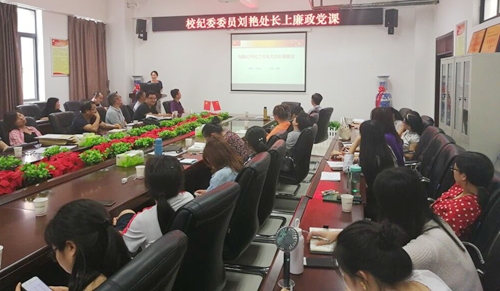 刘艳处长通过讲道理、摆事实,谈体会、谈感悟,在全体教职工中做到了有效地提醒、帮助,做到了教育在先,廉政认识提升,起到了实质的指导作用,让全体党员教师进行了一次精神的洗礼,思想的升华!