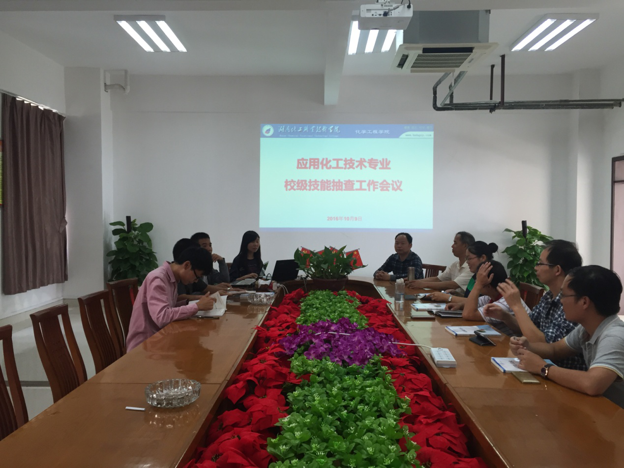为检验学生专业技能操作水平,化学工程学院将在10月15日举行应用化工技术专业校级技能抽查。为此,10月9号中午,化学工程学院在化工楼二楼会议室召开校级专业技能抽查会议,对校级技能抽查工作展开专题讨论,二级学院领导、应用化工技术专业技能抽查项目相关负责人、教研室主任、实验中心负责人及14级应用化工技术专业全体班主任老师共计12人参加会议。