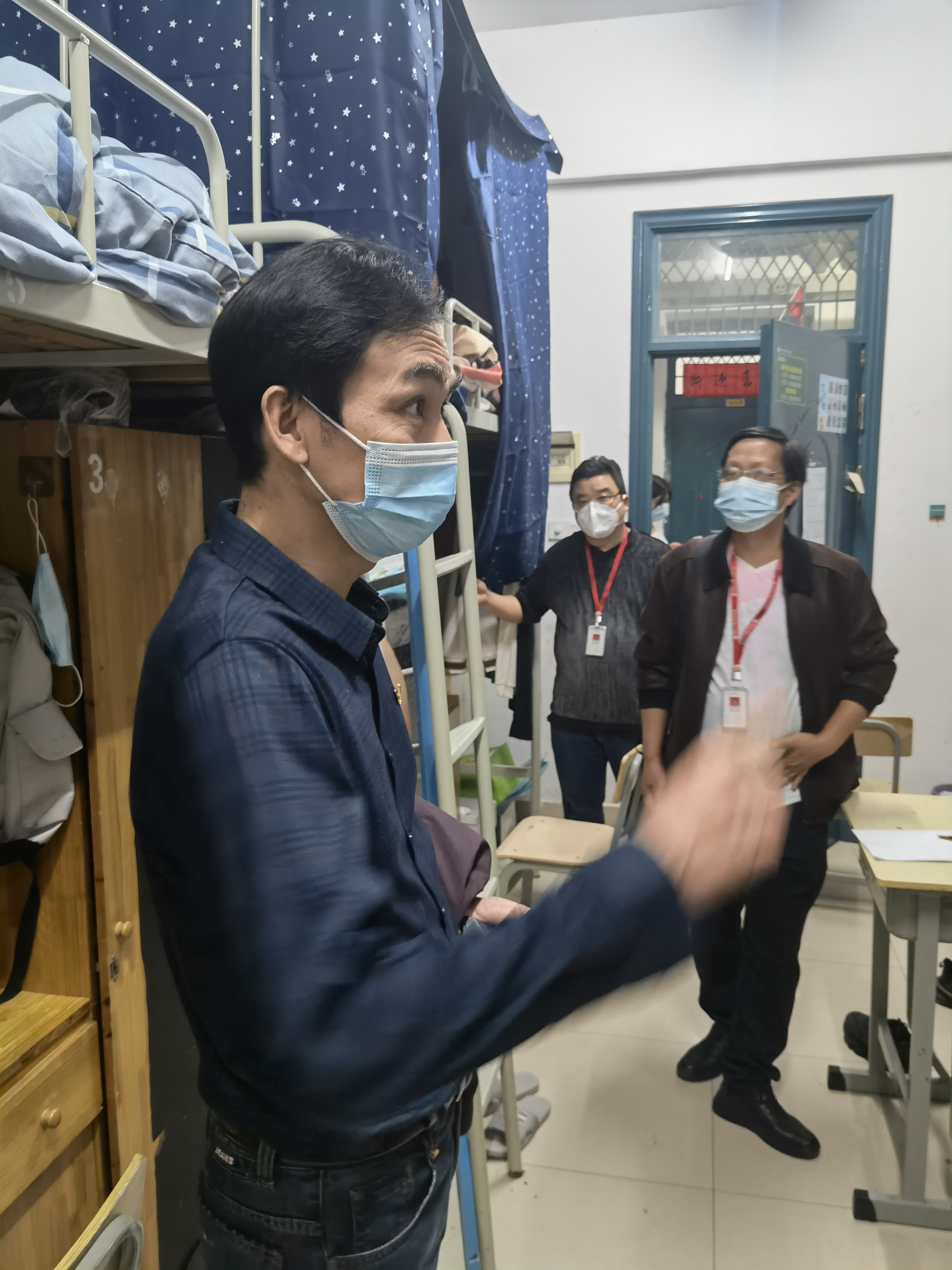为贯彻落实学校疫情防控要求,学院第一时间召开线上党政联席会研究布置抗疫非常时期各项工作,教学方面要求做到“??尾煌QА?,全体任课教师要精心做好线上教学准备,确保教学质量;学生工作方面要尽全力做好学生生活保障和服务,确保学生身体健康、生活有序;重点项目建设方面,要求改变工作模式,实行居家办公,确保项目建设有序推进。当前最重要的工作是抗疫,首要的任务是组织一线抗疫队伍。总支书记彭志宏要求:要让党旗在抗疫一线飘起来、党徽在抗疫一线亮起来、党员在抗疫一线动起来。在学校发布校园封控管理通告的第一时间,党总支紧急召唤专职辅导员、党员教师进驻学校值班值守。11月3日,彭志宏书记、黄铃副院长与尹琦、李建伟、胡志勇、徐娟、李湘、方松刚、殷洁、帅澜婷、刘芯男、郭柃妤、谢洁等11位专职辅导员一起住校,组织开展疫情防控工作。11月6日起,唐淑贞副院长、温拥军副书记,专职辅导员冯灿、凌文静以及刘小忠、廖红光两位老师都在健康码正常后第一时间加入抗疫先锋队,组建了一支 “班子成员全部到位、辅导员全员参与、党员教师为补充”的19人教师抗疫先锋队。同时,组织学生党员、学生干部、志愿者成立学生抗疫先锋队,形成了党建引领的疫情防控指挥调度工作体系,凝聚疫情防控一线的最强合力。