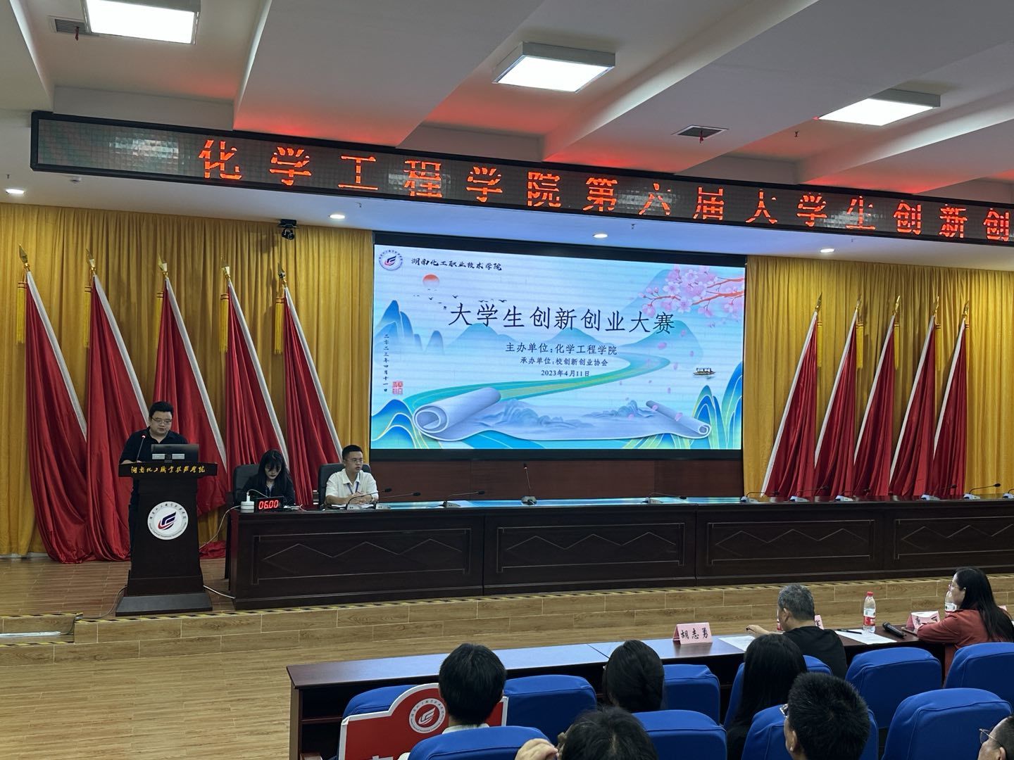 4月11日晚,化学工程学院第六届大学生创新创业大赛决赛在图书馆一楼二号报告厅举行。学院党总支副书记温拥军为大赛致辞,比赛特邀学校招生就业处副处长唐丽、制药与生物工程学院阳小宇教授等领导老师担任评委。