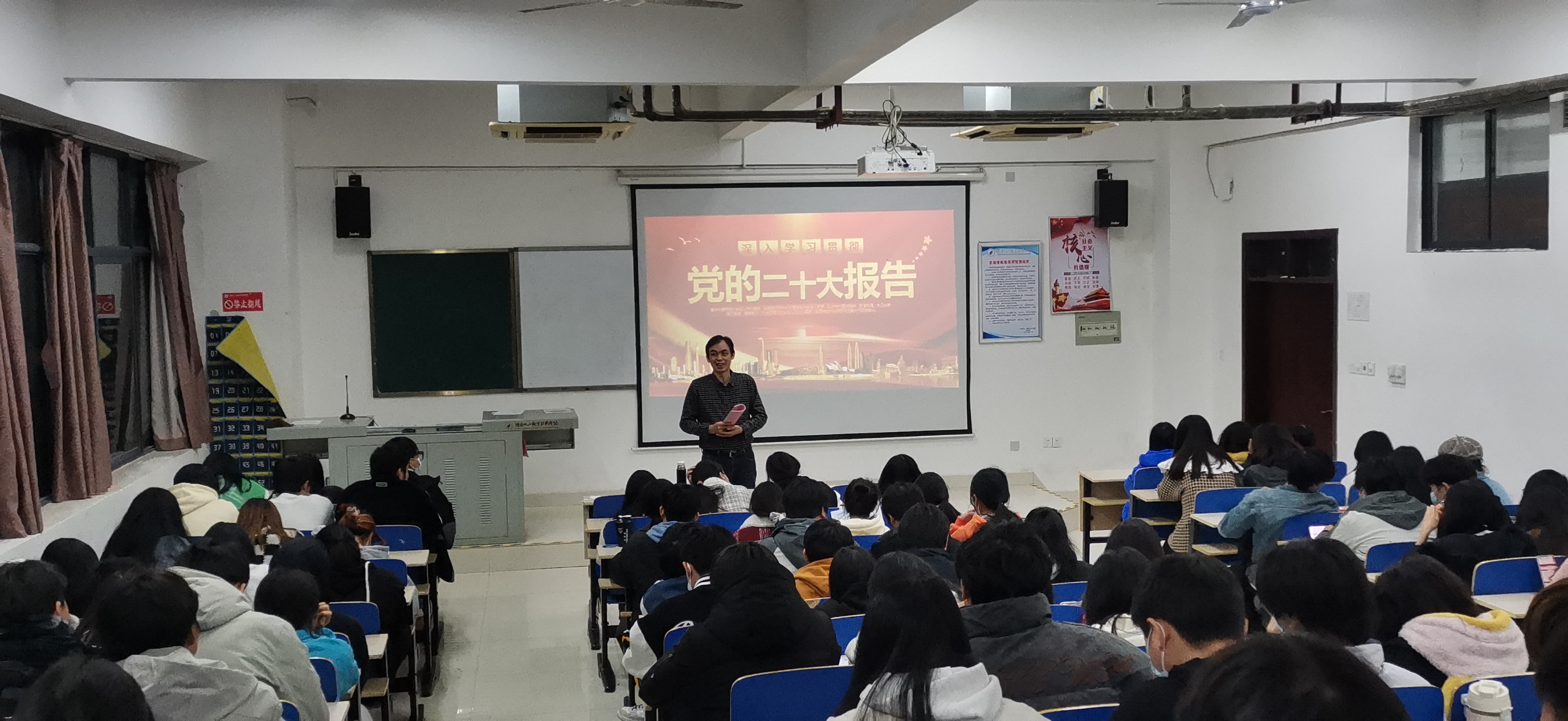 12日5日至7日晚,周炳炎和曾子茜分别在图书馆报告厅和学校大礼堂为学院2100余名学生宣讲党的二十大精神。周炳炎、曾子茜在宣讲中介绍了党的二十大召开的历史背景、重要意义、大会的主题、大会的主要精神等,围绕 “三个务必”、“归根到底是两个‘行’”、“中国式现代化的中国特色”等内容阐述了二十大报告中的新观点、新论断、 新思想。宣讲报告内容全面、脉络清晰,对学生全面准确把握党的二十大精神内涵具有重要的启发和引导作用。