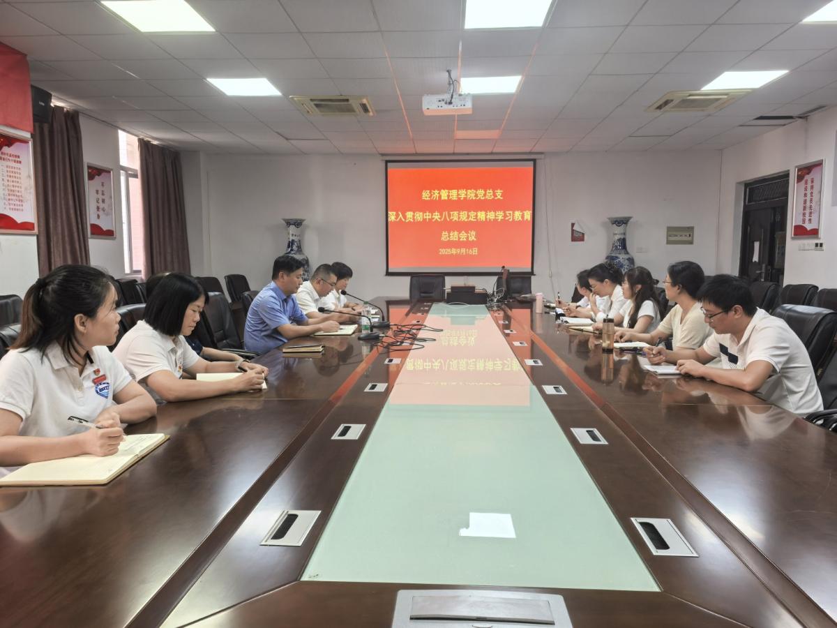 会议传达学习了习近平总书记关于深入贯彻中央八项规定精神学习教育的重要指示精神。党总支书记杨孝辉作总结报告,系统回顾了经济管理学院深入贯彻中央八项规定精神学习教育所采取的系列举措,总结经济管理学院学习教育情况。研究部署巩固拓展学习教育成果、推进作风建设常态化长效化工作。