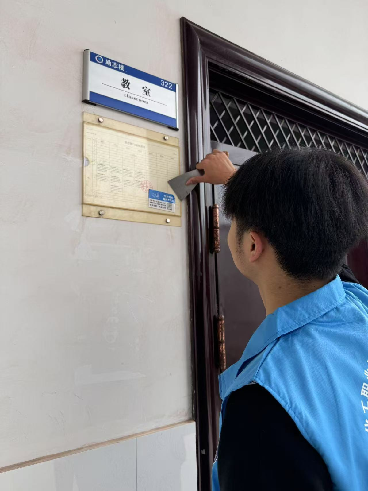 活动期间,志愿者们充分彰显出不怕脏、不怕累的奉献精神。他们人手配备铲刀、喷壶等清理工具,针对学院教学楼各楼层墙面、卫生间、教室门窗等重点区域的小广告,展开了细致入微的地毯式清查与清理。面对那些牢牢附着的顽固贴纸,志愿者们毫不气馁,耐心地先用湿布浸润,再用小铲子一点点仔细铲除。经过数小时全力以赴的奋战,累计成功清除各类违规张贴物超百余处。一时间,校园内的小广告踪迹全无,教学区域面貌焕然一新,重绽蓬勃生机。