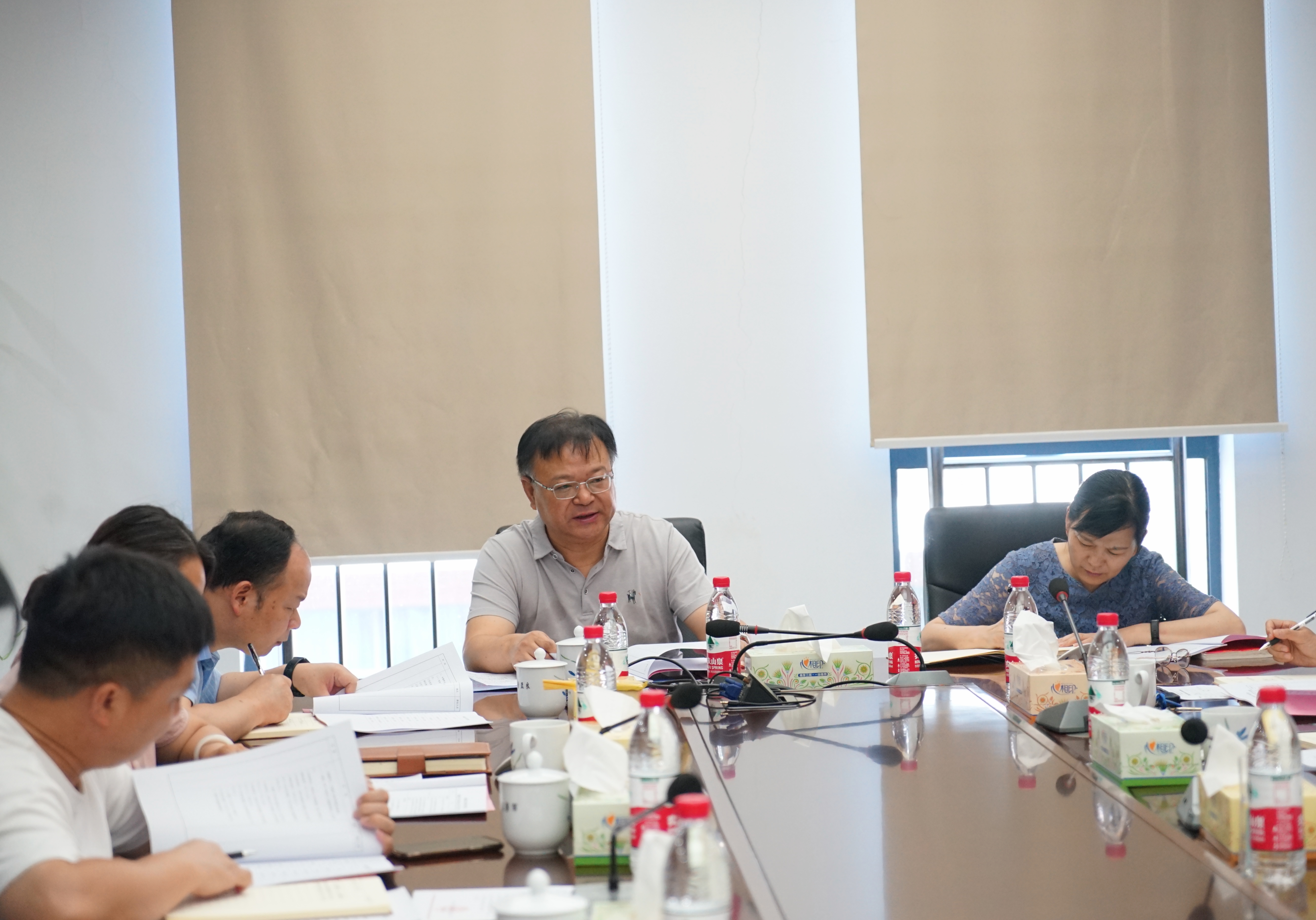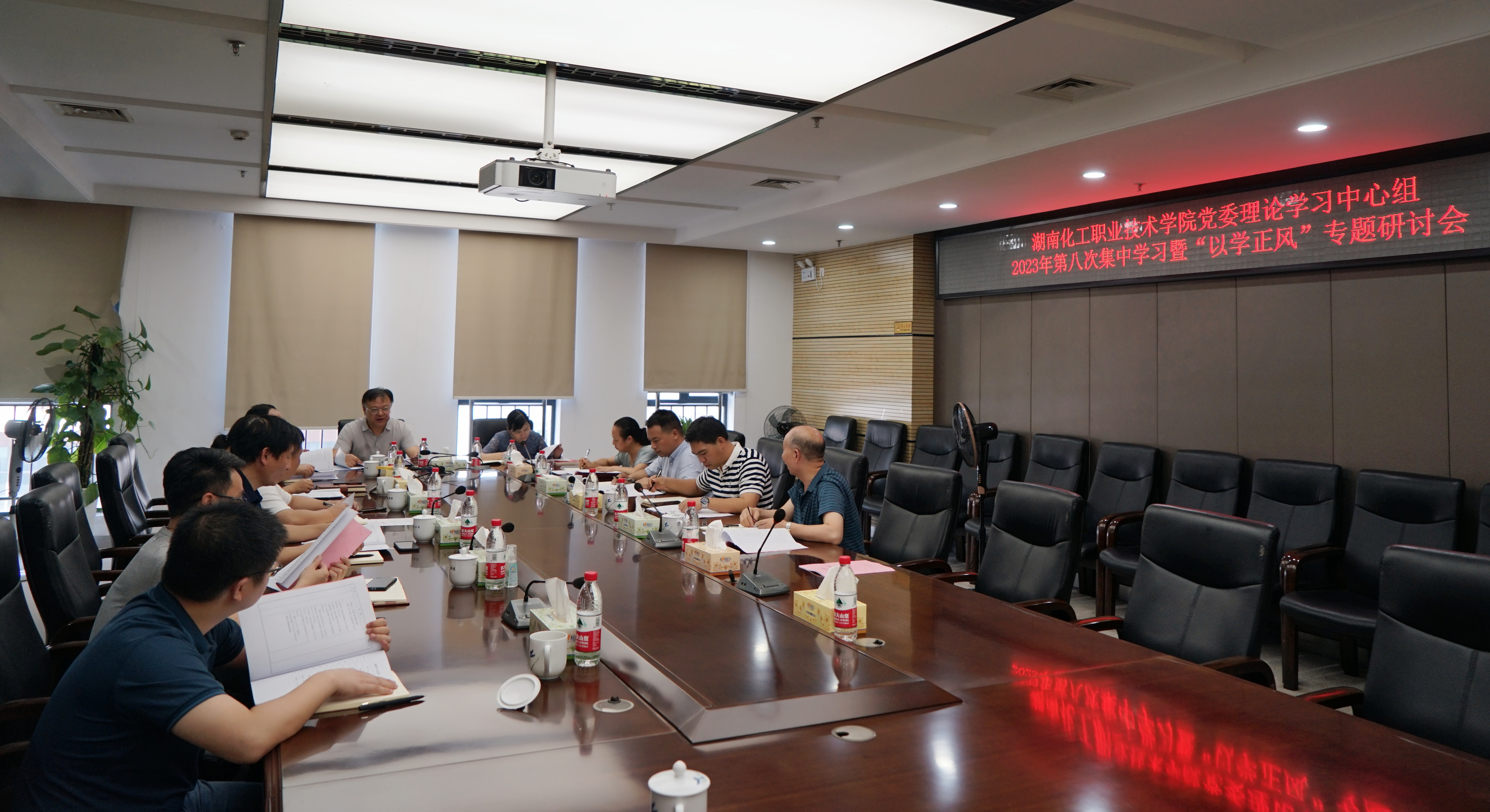 7月13日,学校党委理论学习中心组在行政楼三楼会议室举行2023年第八次集中学习,全体党委委员参加学习,党委书记陈超领学。