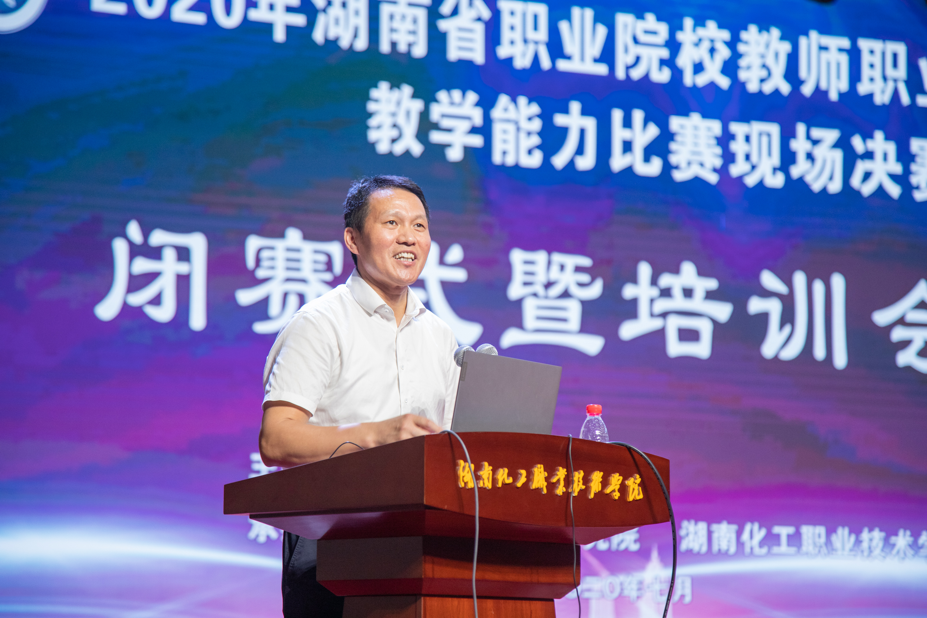 8月1日上午,由湖南省教育厅主办、湖南省教育科学研究院和湖南化工职业技术学院承办的2020年湖南省职业院校教师职业能力竞赛教学能力比赛现场决赛闭幕式在湖南化工职业技术学院多功能报告厅举行。闭幕式由省教育厅职成处副处长周韶峰主持。