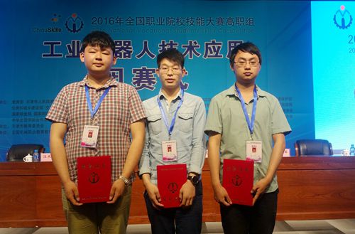 5月11日上午,2016年全国职业院校技能大赛工业机器人技术应用赛项在天津机电职业技术学院闭幕。来自全国各省、自治区、直辖市共44支队伍参加了本届大赛。我院参赛选手周奕龙、于超发、钟寒在尹霞、陈土军、张军等三位老师的悉心指导下,于5月8号的第一场比赛中沉着冷静应对,出色完成比赛任务,最终取得了大赛总分第8名的佳绩,荣获团体二等奖。