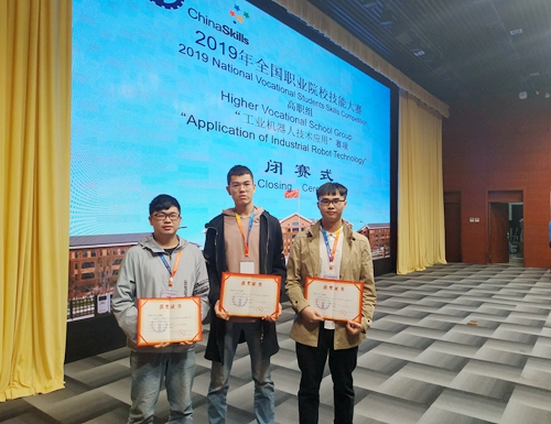 5月8日,2019年全国职业院校技能大赛高职组“工业机器人技术应用”赛项在天津机电职业技术学院开赛,共有来自全国30多个省、直辖市、自治区、计划单列市和新疆生产建设兵团的83个代表队的249名选手参加。由机电工程学院尹霞、张军、凌旭等老师指导的学生雷理、唐振华、袁俏芳在激烈的竞争中攻坚克难,稳定发挥,获得三等奖。