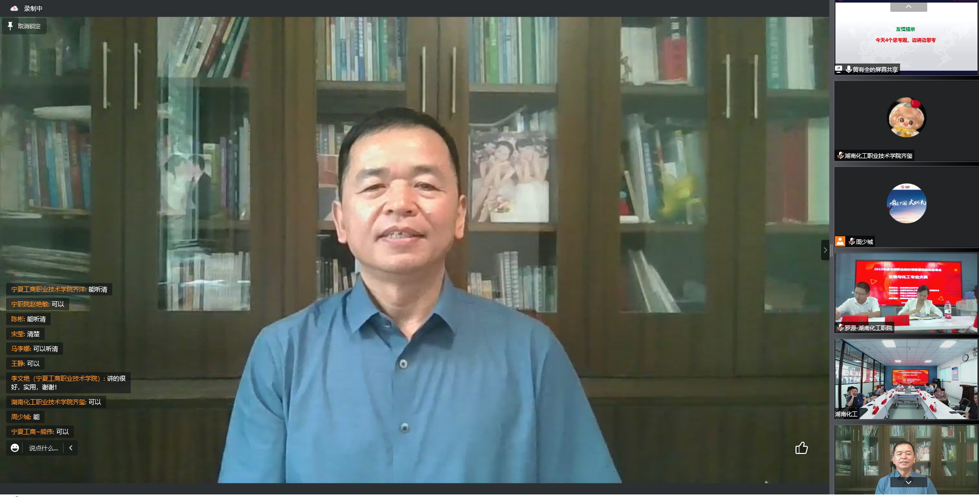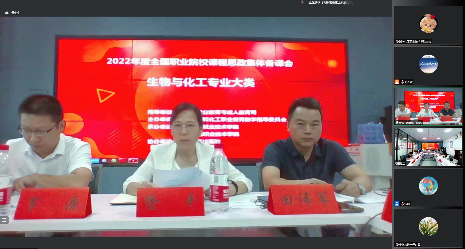 9月24日,2022年全国职业院校生物与化工专业大类课程思政集体备课成功举行。本次课程思政集体备课由教育部职业教育与成人教育司指导、石油和化工职业教育教学指导委员会主办、湖南化工职业技术学院与宁夏工商职业技术学院承办,高等教育出版社协办。石油和化工职业教育教学指导委员会副主任、中国化工教育协会副会长于红军、我校校长隆平、宁夏工商职业技术学院副校长宋莹、石油和化工职业教育教学指导委员会特邀领导及专家、生物与化工专业大类国家级课程思政示范课程教学名师、全国多所化工职业院校及我校相关专业教师共计3000余人参加了线上集体备课。集体备课会由我校教师工作部部长、教务处处长罗源主持。