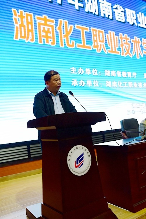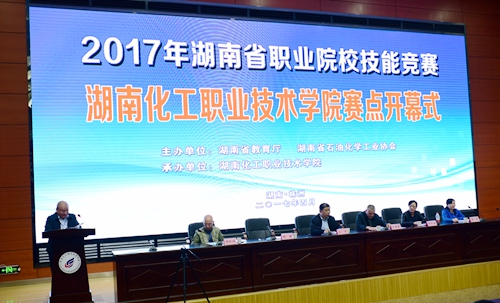 4月25日下午,由湖南省教育厅、湖南省石油化学工业协会主办,湖南化工职业技术学院承办的2017年湖南省职业院校技能竞赛湖南化工职业技术学院赛点开幕式在我校图书馆多功能报告厅隆重举行。赛点主任、我校党委书记刘望,省石油化学工业协会秘书长张健、省教育厅委派赛点第一副主任彭跃湘、省教育厅委派赛点巡视员彭文胜、省教育厅委派赛点联络员温宇及本次竞赛裁判员、参赛选手等近500人参加开幕式。我校校长王雄伟主持开幕式。