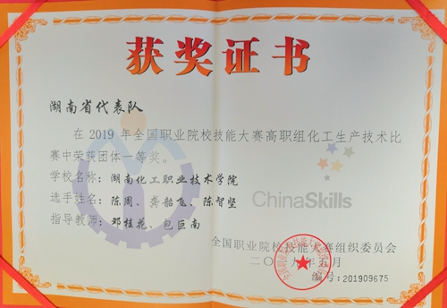 5月17日上午,2019年全国职业院校技能大赛高职组“化工生产技术”赛项在广东轻工职业技术学院顺利闭赛。来自全国27个省、市、自治区,62所高职院校代表队参加角逐,聚集了全国职业院校最顶尖的186名化工生产技术专业高手,是历年来参赛人数最多的一次。我校邓桂花、包巨南老师指导的由学生陈周、龚韶飞、陈智坚组成的代表队获得一等奖,为学校斩获了2019年全国职业院校技能大赛的第二枚金牌,也是连续三年在全国职业院校技能大赛该赛项中斩获一等奖。