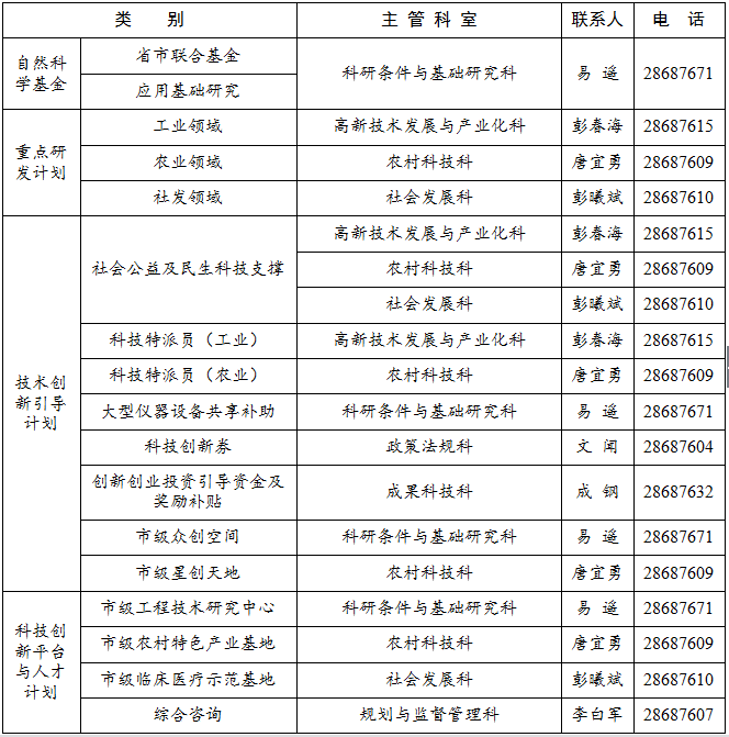1.有关项目申报的未尽事宜,可咨询市科技局对应科室: