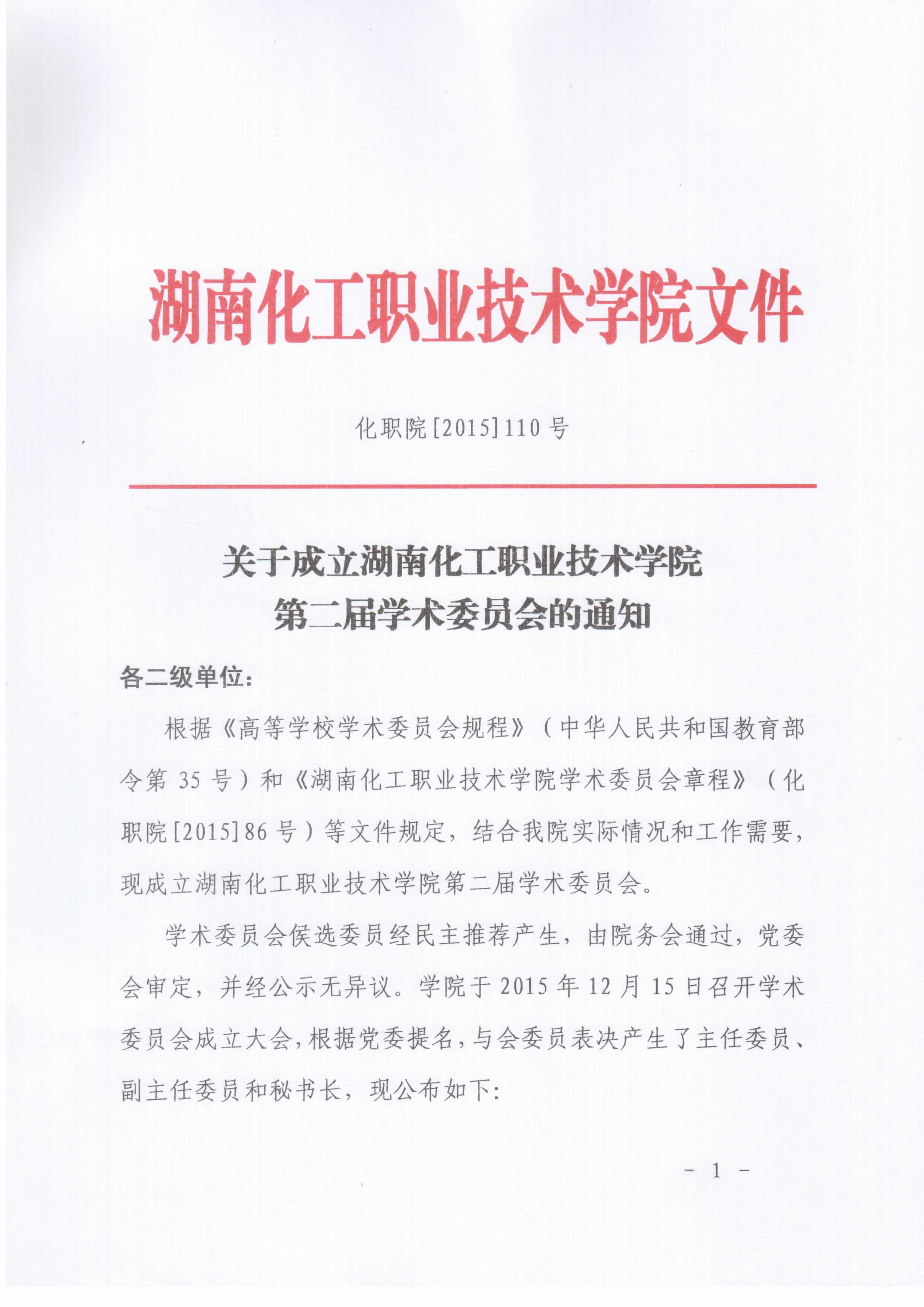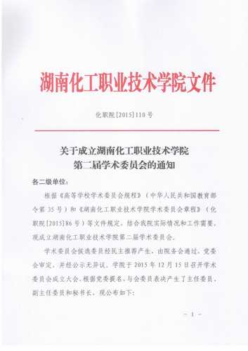 关于成立湖南化工职业技术学院第二届学术委员会的通知
