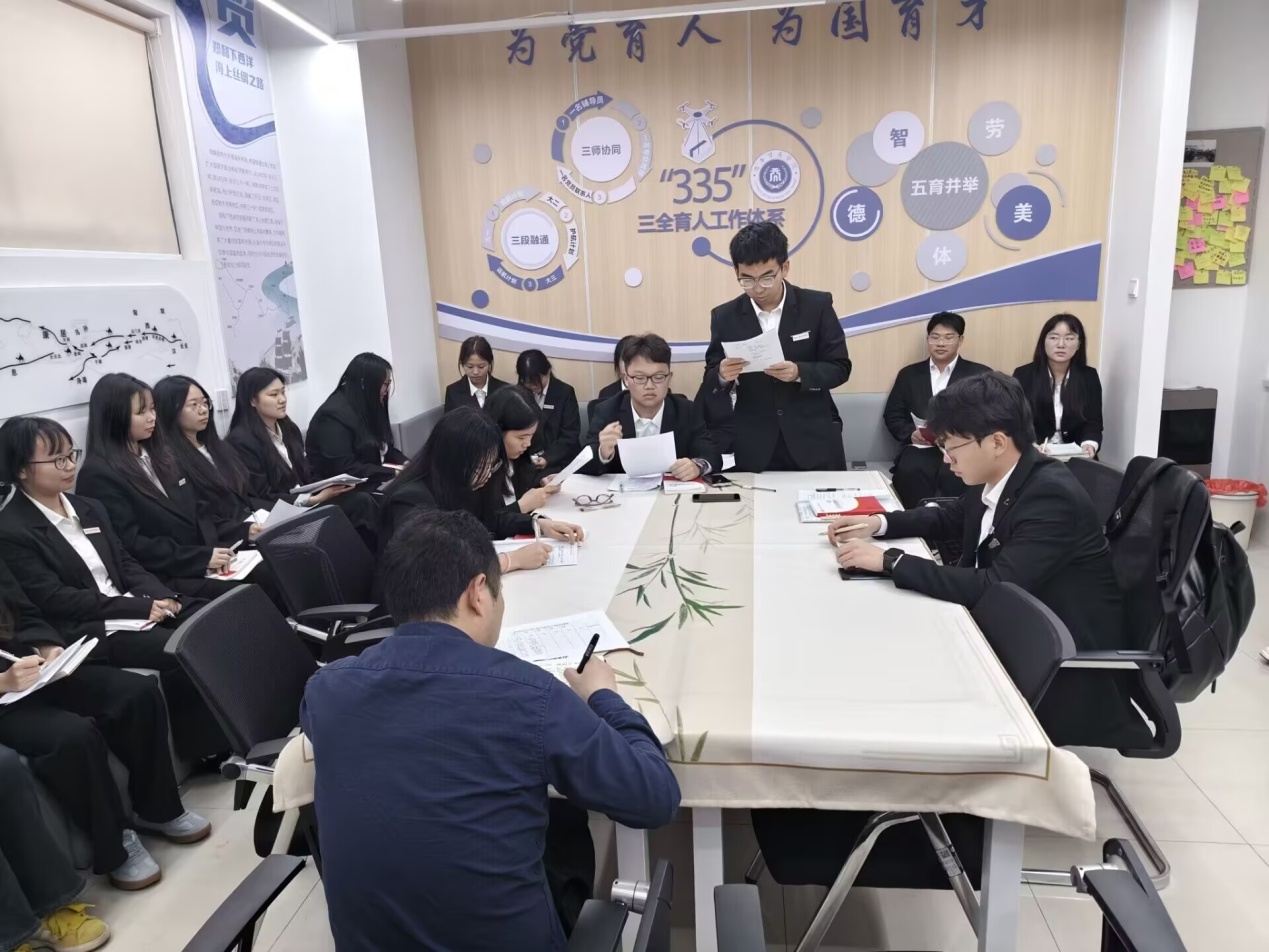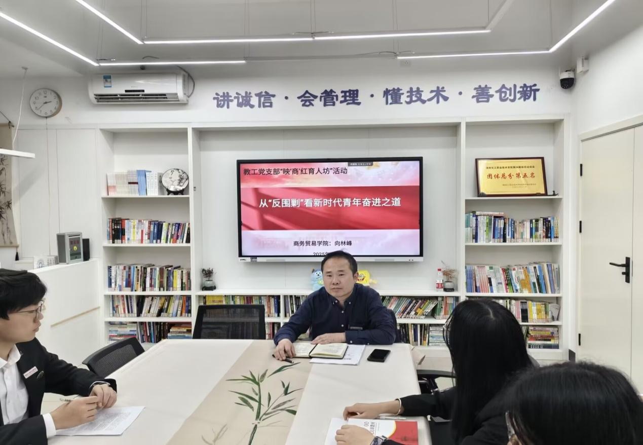 4月28日,为深入学习贯彻习近平新时代中国特色社会主义思想,加强学生思想政治教育,商务贸易学院党总支副书记、副院长向林峰在唯真苑一站式社区院开展教工党支部映“商”红育人坊活动。2025年第一期入党积极分子培训班全体学员参与了本次活动。
