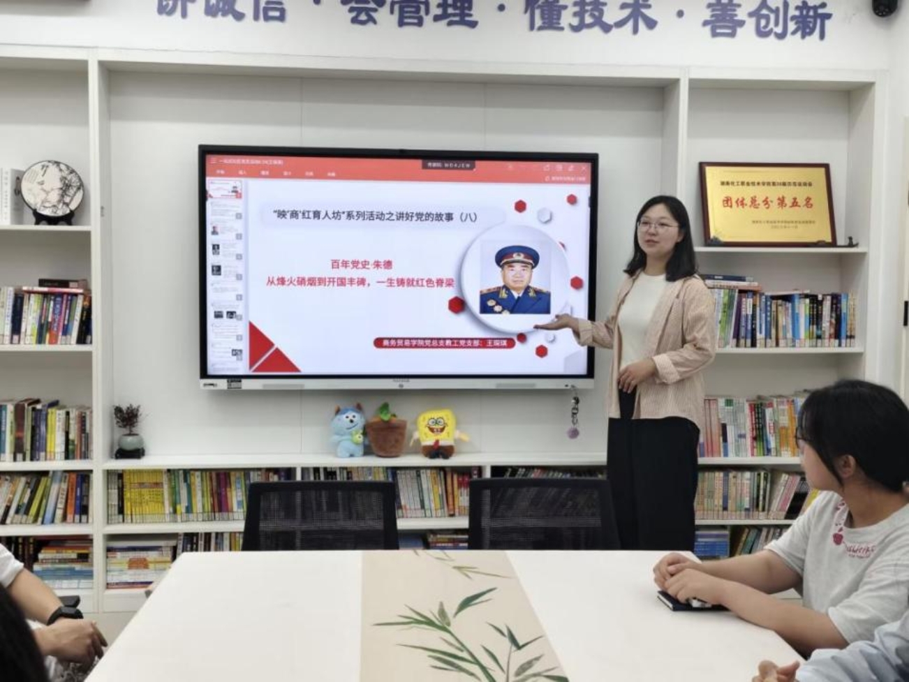 6月24日下午,商务贸易学院党总支教工党支部举办第八期“映‘商’红育人坊”活动。本期主题聚焦朱德元帅的革命生涯——“百年党史·朱德——从烽火硝烟到开国丰碑,一生铸就红色脊梁”,旨在引领学生感悟伟人精神,汲取奋进力量?;疃山坦ぶР康吃蓖蹊$髦鹘?,学院全体入党积极分子参加。