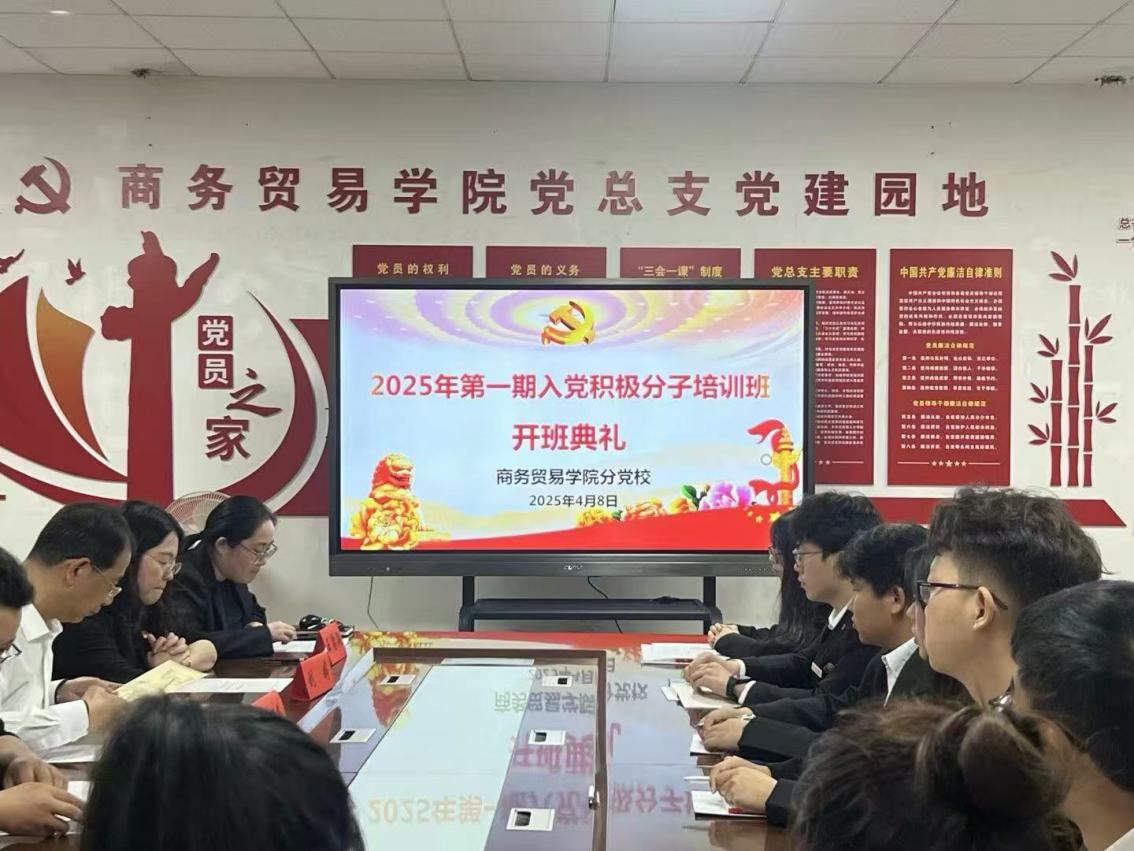 2025年4月8日下午,商务贸易学院分党校在励志楼136会议室举行2025年第一期入党积极分子培训班开班仪式,22名入党积极分子开启政治淬炼新征程。学院党总支书记严可为、副书记温拥军、总支部委员会委员刘婷、憨慧、谭敏等出席,仪式由学工党支部书记王馨颖主持。