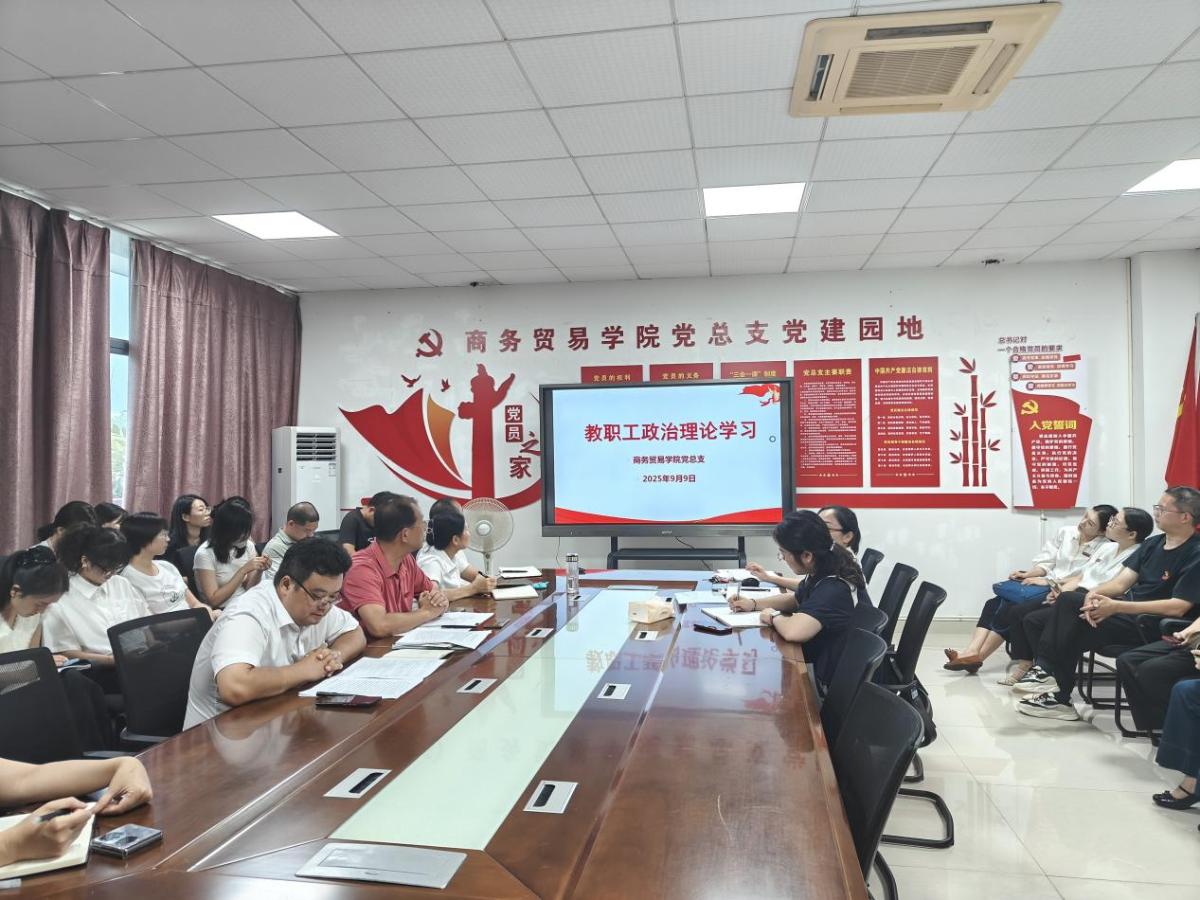 9月9日下午,商务贸易学院在励志楼136会议室举行本学期首次教职工理论学习会议。本次学习由党总支书记严可为领学,全院教职工参加。
