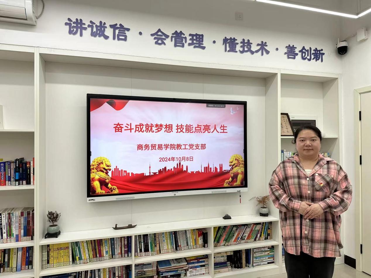 10月8日中午,商务贸易学院教工支部“映‘商’红育人坊”第二期活动在唯真苑商务贸易学院一站式社区内顺利开展。本次活动以“奋斗成就梦想,技能点亮人生”为主题,活动由商务贸易学院教工支部组织委员张渺岚主持,学院全体入党积极分子和已提交入党申请书的新生代表参加了此次活动。