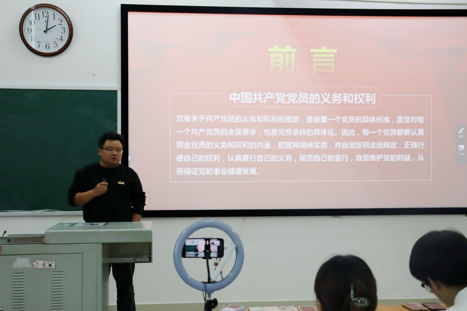 为加强入党积极分子对中国共产党员的权利和义务的了解,10月22日下午14:00,商务贸易学院分党校在励志楼217进行了2024年第二期入党积极分子培训班党课第二讲。本次课由商务贸易学院党总支副书记、分党校副校长温拥军主讲,54名入党积极分子全员参加,其中23级现代物流管理专业外出实训的入党积极分子进行了在线学习。