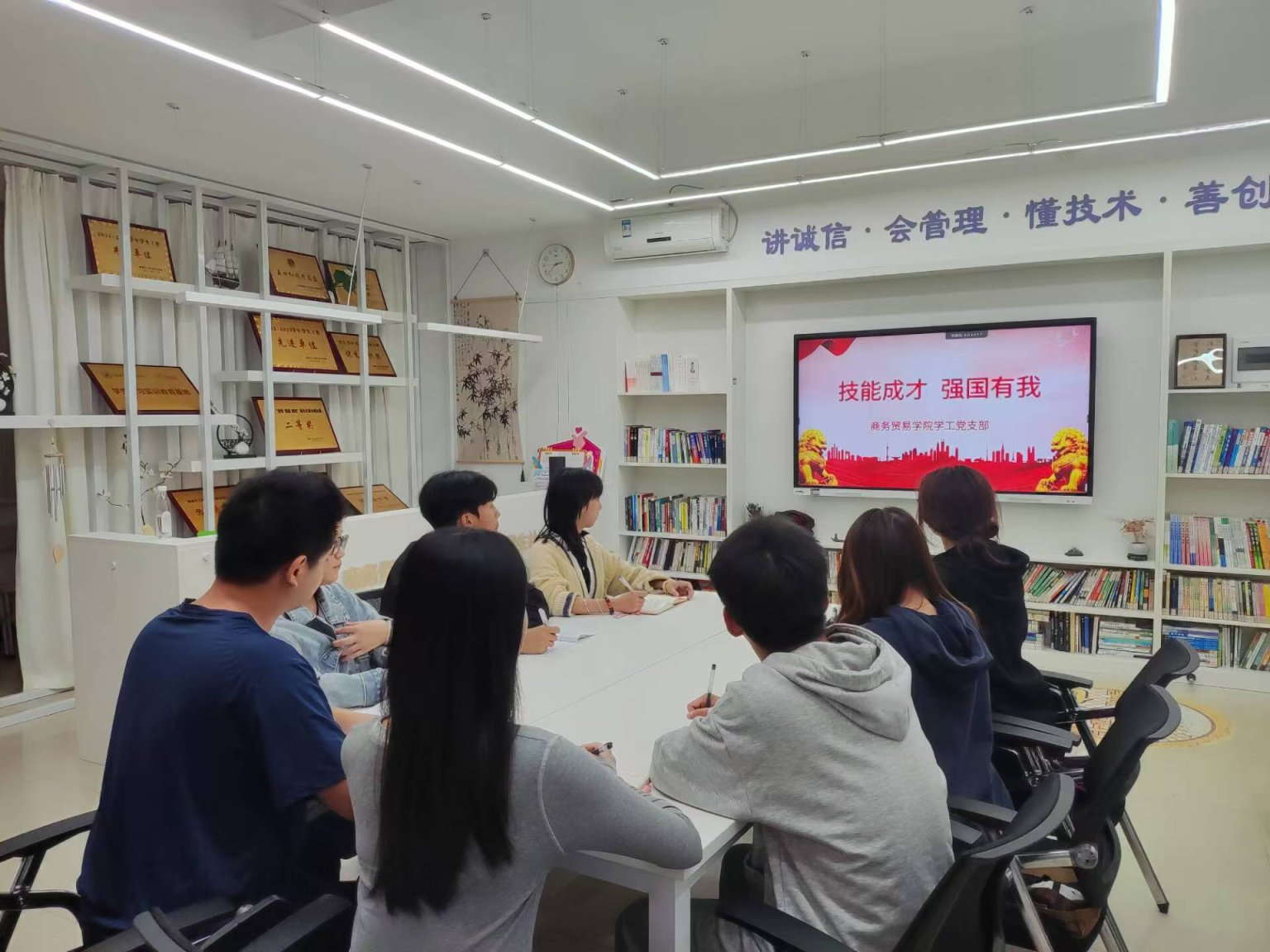 商务贸易学院学工党支部组织全体预备党员于10 月30日晚上,在唯真苑一站式社区举行了一场以“技能成才 强国有我”为主题的讨论会。此次讨论会旨在深入学习贯彻《中华人民共和国职业教育法》,进一步激发学生的爱国情怀和技能成才的决心。