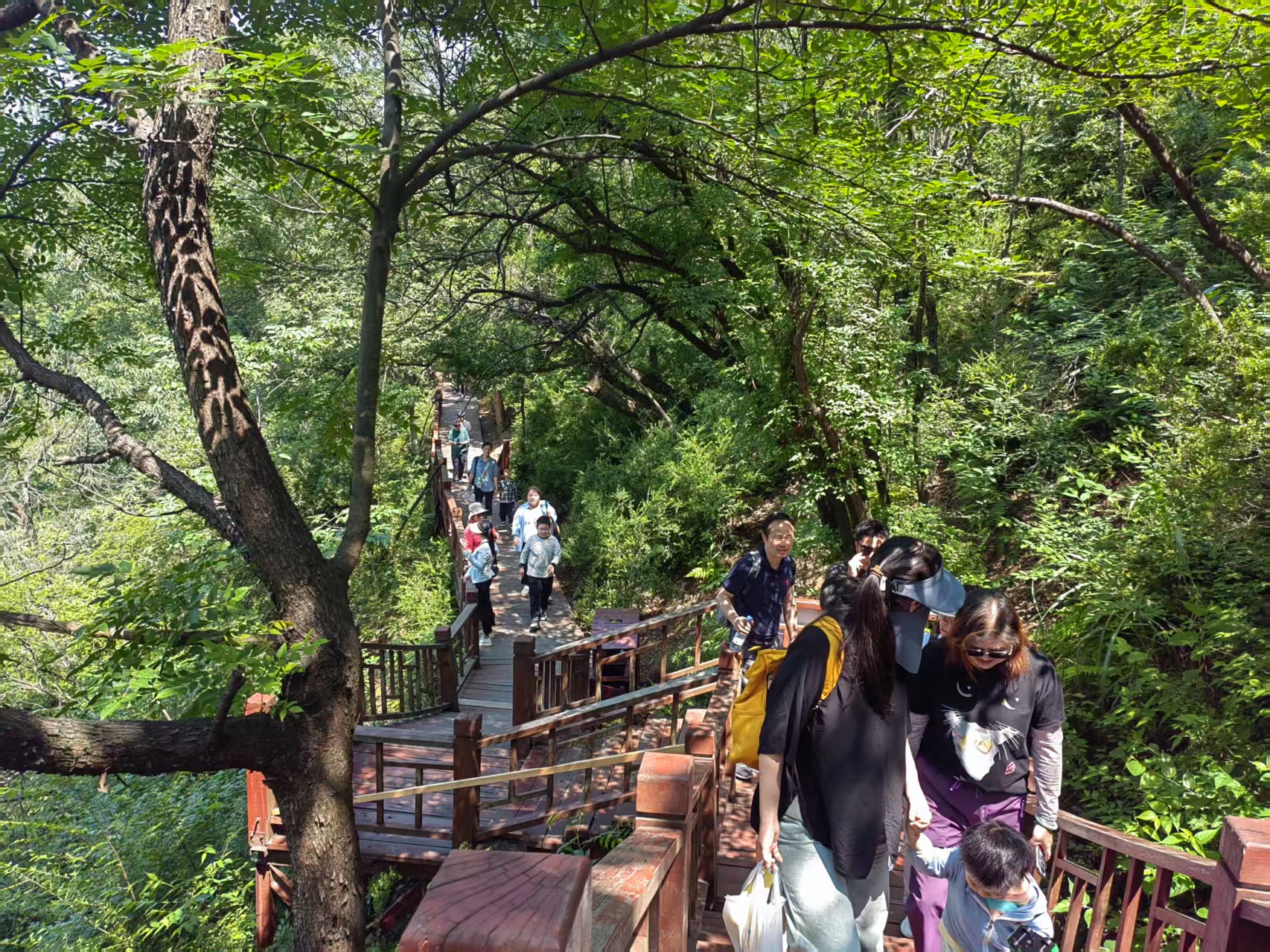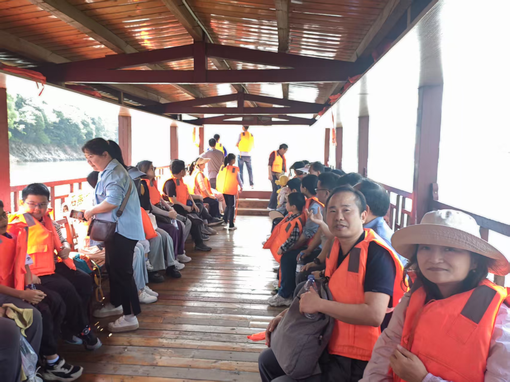 乘船泛舟湖上,碧波荡漾间,大家分享教学趣事与生活感悟,拉近了彼此距离;踏上横跨湖面的高空玻璃桥与藤桥,教职工们携手并肩,在步步惊心的挑战中相互鼓励,笑声与加油声此起彼伏;漫步森林绿道,清新的空气与鸟语虫鸣让身心全然放松;而网红打卡地“天空之境”更成为焦点,镜面倒映着蓝天白云与教职工们灿烂的笑容,定格下美好瞬间······