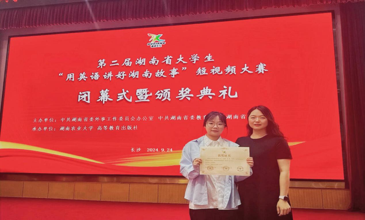 9月24日,由商务贸易学院刘婷和罗晨两位老师指导的作品《用科创初心守护一江碧水》荣获湖南省第二届大学生“用英语讲好湖南故事”短视频大赛高职组二等奖,指导教师同时获“优秀指导老师”奖。