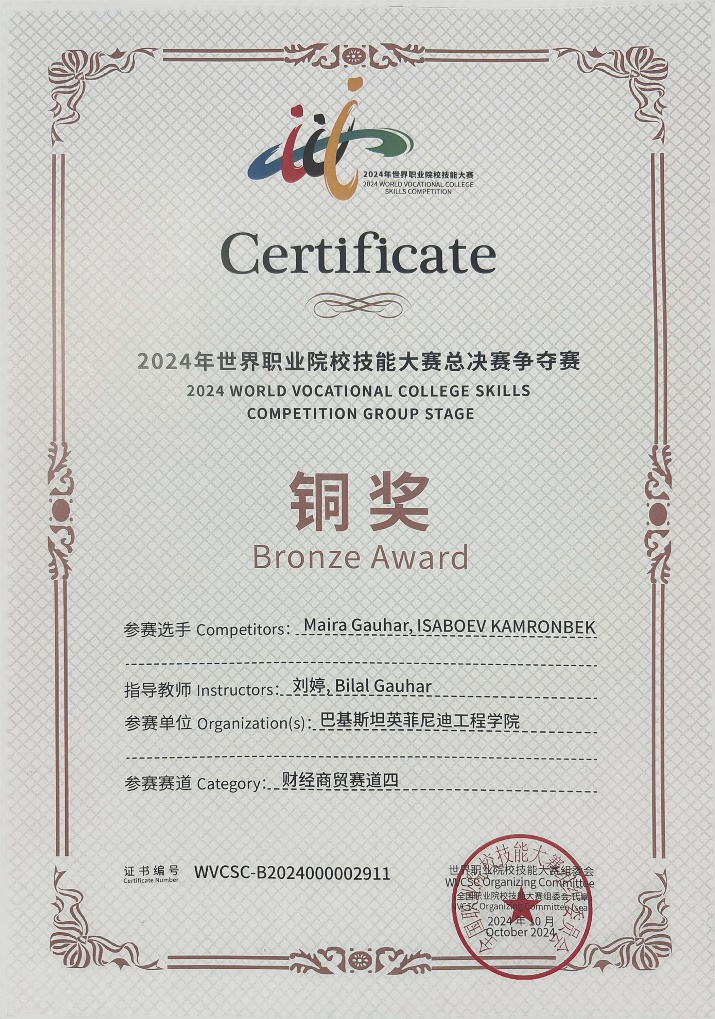 12月,世界职业院校技能大赛总决赛争夺赛国际组比赛落下帷幕,我校携手巴基斯坦英菲尼迪工程学院共同参赛,取得了优异的成绩。