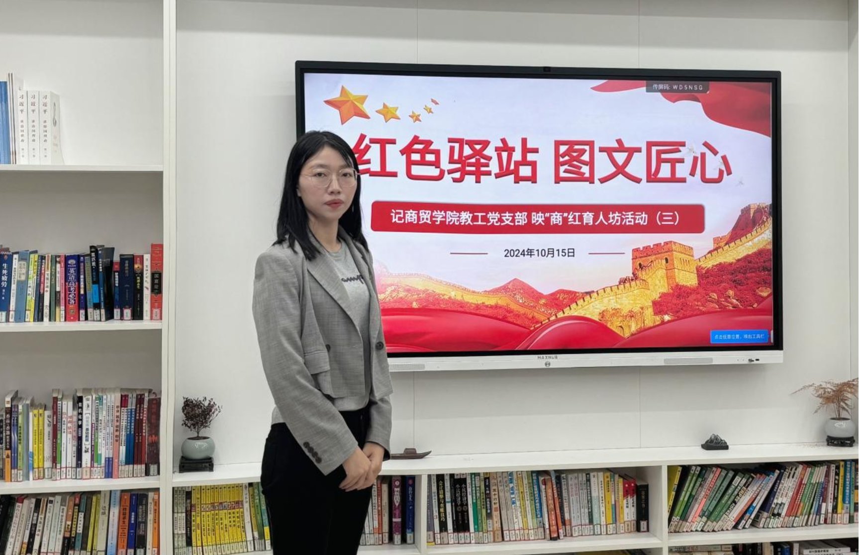 10 月 15 日,商务贸易学院一站式社区内热闹非凡,“映‘商’红育人坊” 第三期活动闪耀登场。本次活动以 “红色驿站 图文匠心” 为主题,商贸学院教工支部宣传委员肖玲与学院预备党员及部分大三学生齐聚一堂,共同开启这场知识与成长的盛宴。