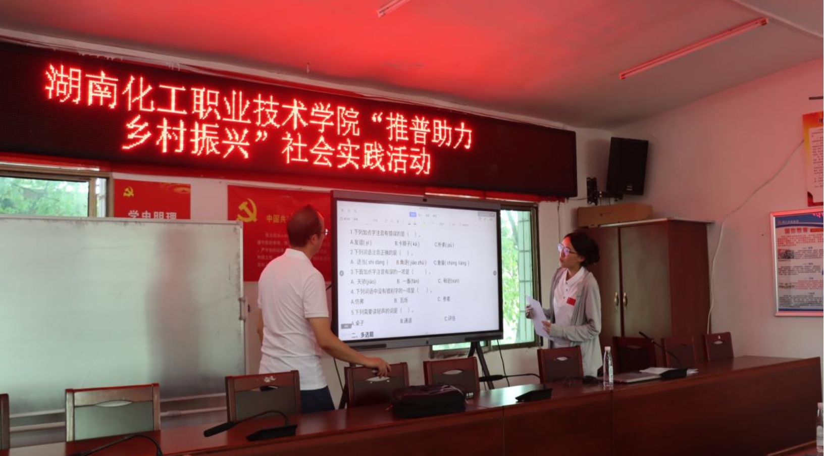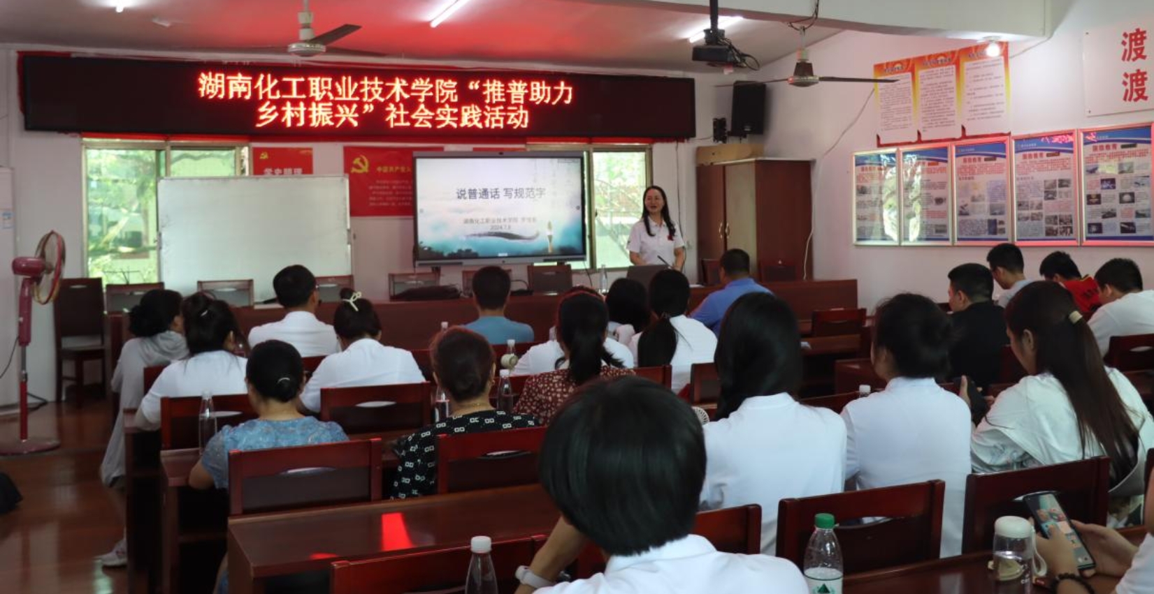 为了帮助深塘村村民消除方言隔阂,促进社会交往,2024年7月8日,湖南化工职业技术学院基础课部罗惜春教授携手商务贸易学院“志愿润乡,电商筑梦”志愿服务队师生在渡口乡政府展开了“推普助力乡村振兴”活动。
