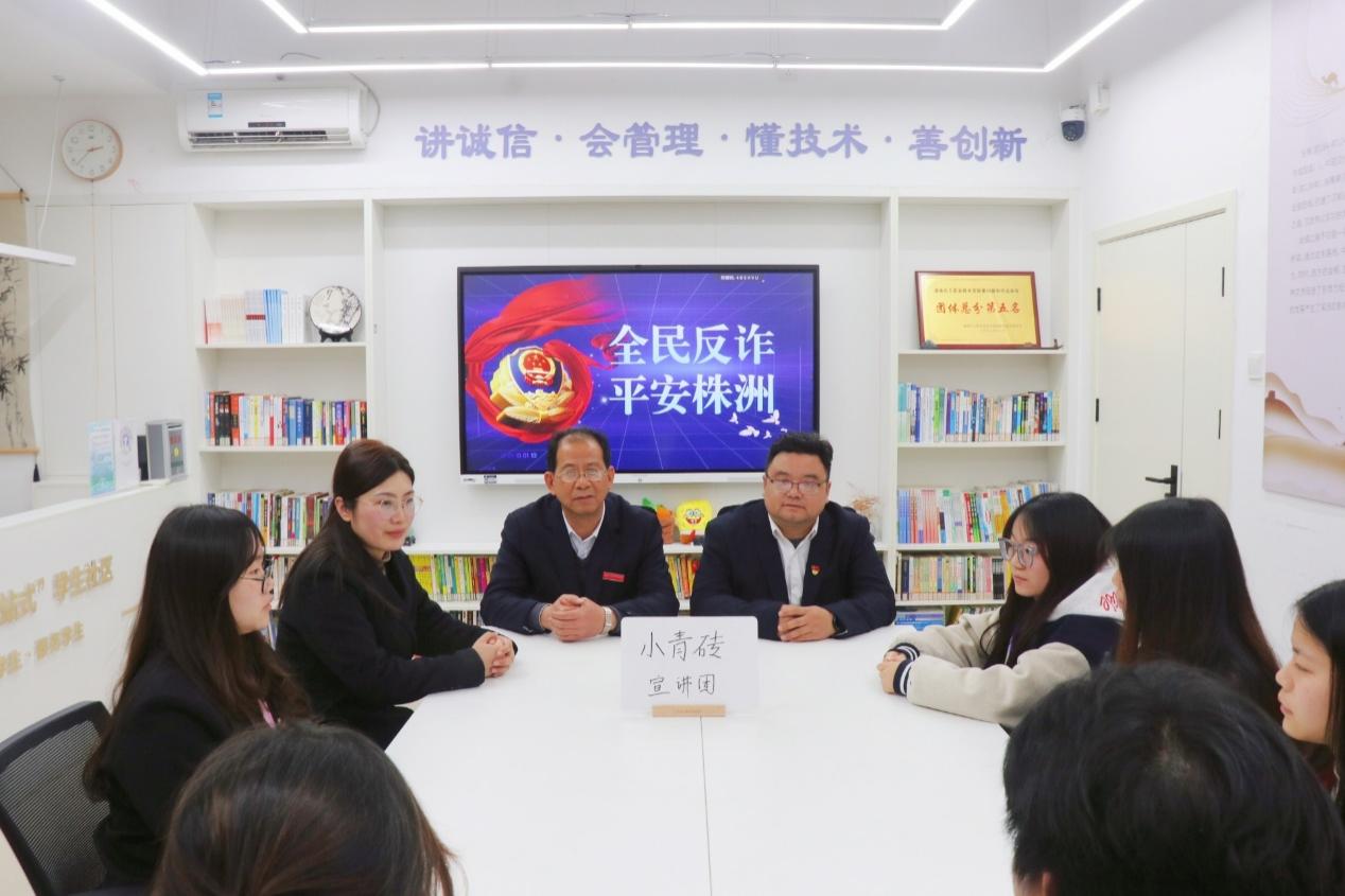 为了全力提升师生反诈意识,营造安全校园环境,有效遏制电信网络诈骗犯罪的高发态势,2月20日,商务贸易学院“小青砖”宣讲团在唯真苑学生一站式开展“全民反诈,平安株洲”主题宣讲。出席此次活动的有学院党总支书记严可为、党总支副书记温拥军以及各团学干部,此次活动由辅导员陈媛媛主讲。