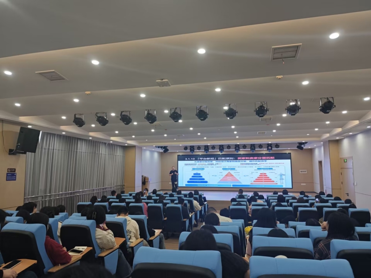 蔡应林首先从自己的个人经历讲起,分享了他在跨境电商领域的奋斗历程和成功经验。他的故事充满了挑战与机遇,为在场的同学们树立了榜样,激发了大家对跨境电商行业的浓厚兴趣。
