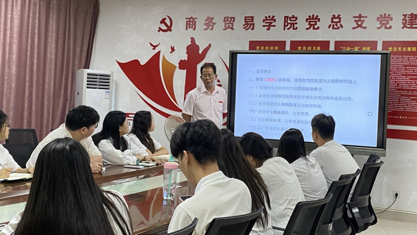 宣讲会上,严可为围绕“教育强国”这一主题,从三大属性、五个重大关系、八大体系、九方面任务举措进行了深入浅出的讲解。他结合学院专业特色,重点阐述了新时代商务贸易人才培养的方向和要求,号召全体学生干部要发挥模范带头作用,以实际行动践行教育强国的时代使命。活动现场气氛热烈,参会学生干部认真聆听、积极思考。大家纷纷表示,通过此次宣讲活动,更加明确作为新时代大学生的责任与担当,将在今后的学习工作中以身作则,带领全院同学共同进步。