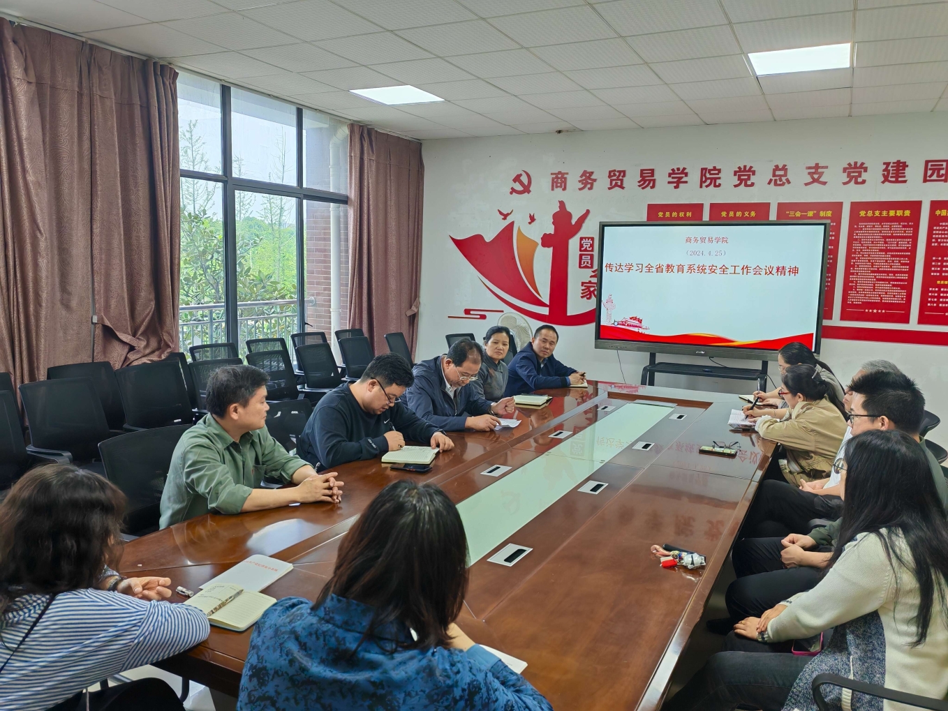 4月25日下午,商务贸易学院在励志楼136召开安全工作会议,传达4月24日全省教育系统安全工作视频会议精神和学校党委书记陈超有关安全工作的讲话精神,并对学院后阶段安全工作进行安排部署?;嵋橛缮涛衩骋籽г旱匙苤榧茄峡晌鞒?。