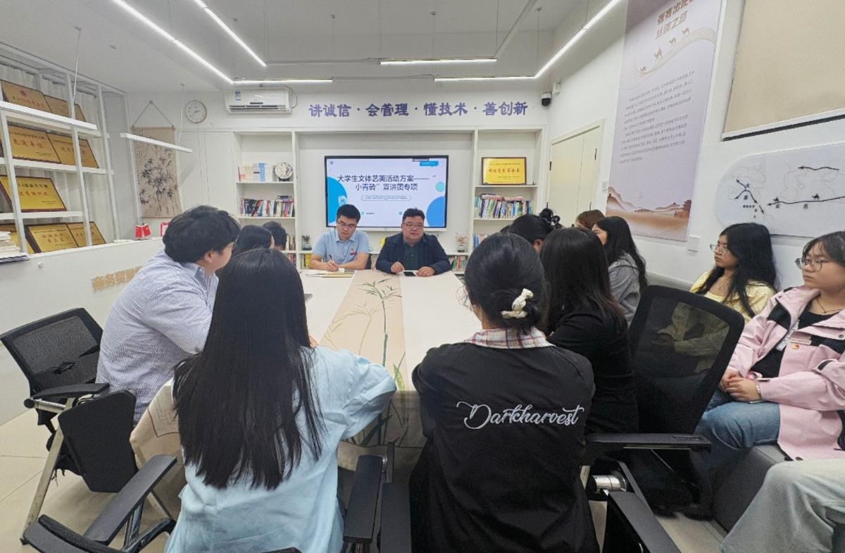 9月25日,商务贸易学院在唯真苑2栋一站式学生社区举办“完美校园、美美与共”大学生文体艺美主题宣讲活动,学院党总支副书记温拥军、团总支书记刘同亚及团学会全体干部参加。