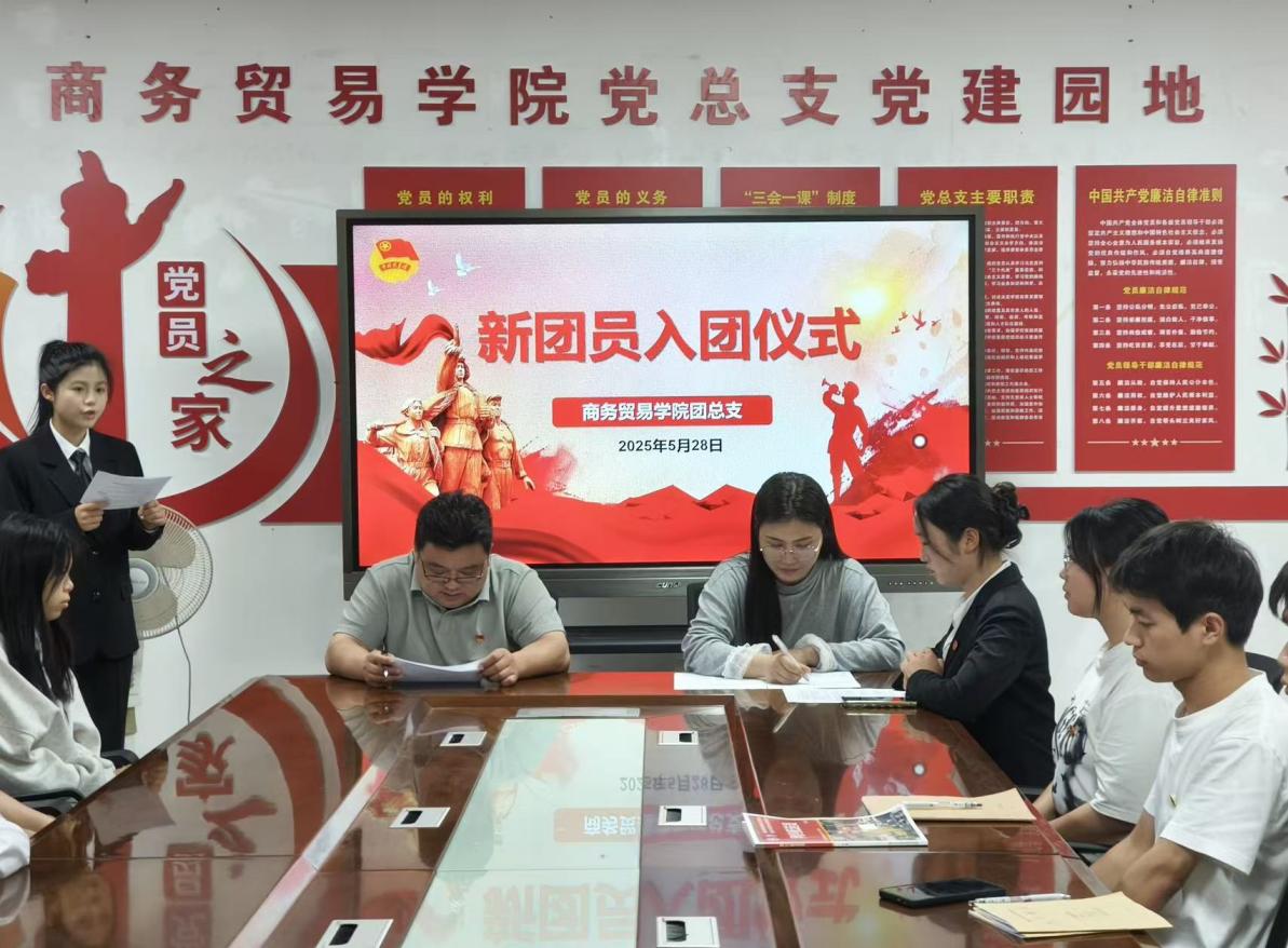 为加强团员理想信念教育,增强团组织凝聚力,5月28日中午12:10,商务贸易学院在励志楼136会议室隆重举行2025年春季团员入团仪式。学院党总支副书记温拥军、学工党支部书记王馨颖、辅导员陈媛媛、28名新团员及部分老团员代表共同见证了这一庄严时刻。