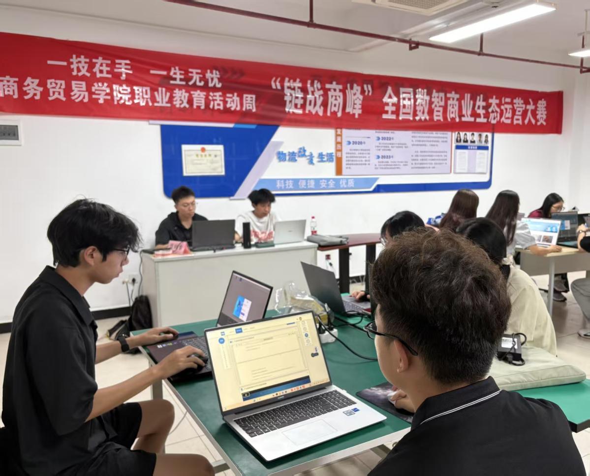 商务贸易学院物流专业的同学积极参加比赛,选手围绕"商业生态运营"核心命题,通过大数据分析、AI算法优化等技术手段,针对供应链协同优化、消费场景智能建模、商业风险动态管控等企业真实痛点,提交数字化解决方案。大赛还鼓励学生为县域电商、农产品供应链等设计数智化方案。