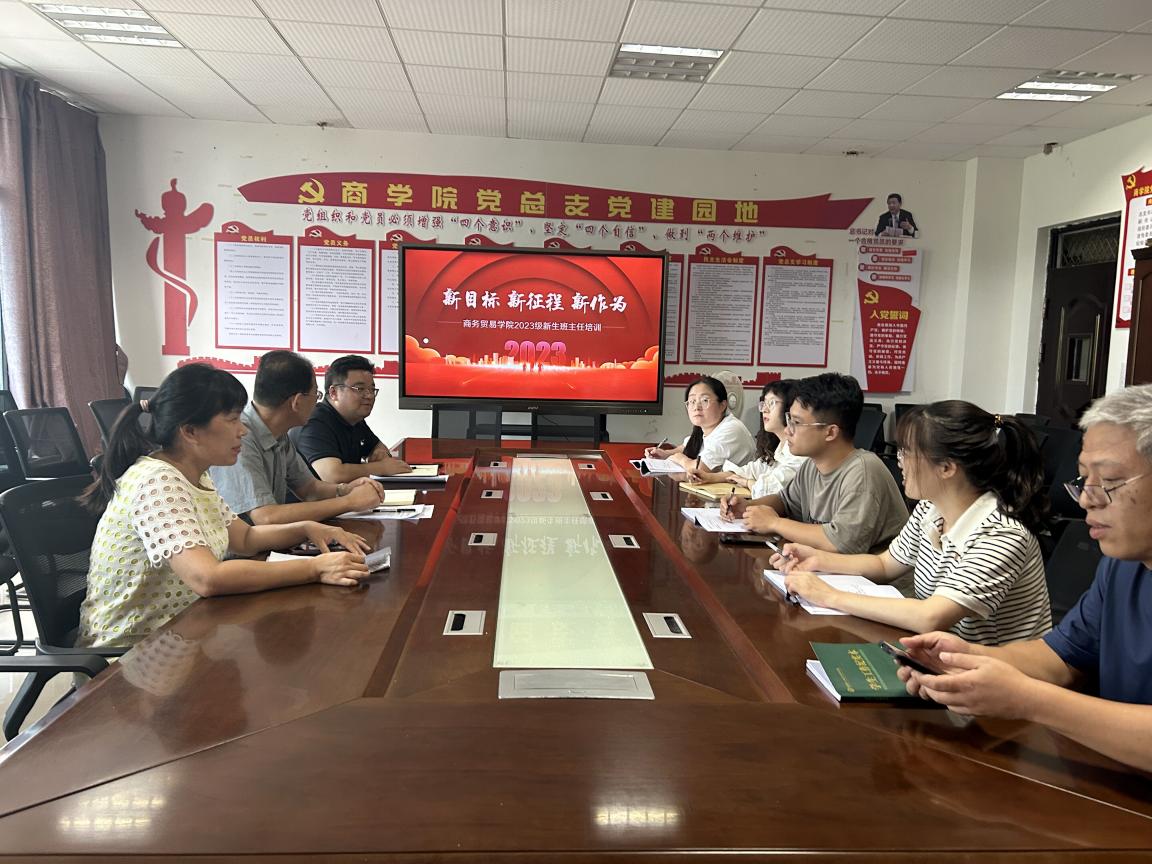 为进一步提升2023级新生专兼职辅导员理论素养和工作实务水平,9月13日下午,商务贸易学院在励志楼136会议室举行了2023级新生专兼职辅导员培训会。全体新生专兼职辅导员参加了本次会议,学院党总支书记严可为出席会议并讲话,会议由学院党总支副书记温拥军主持。